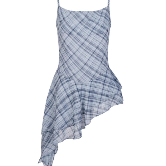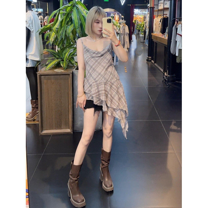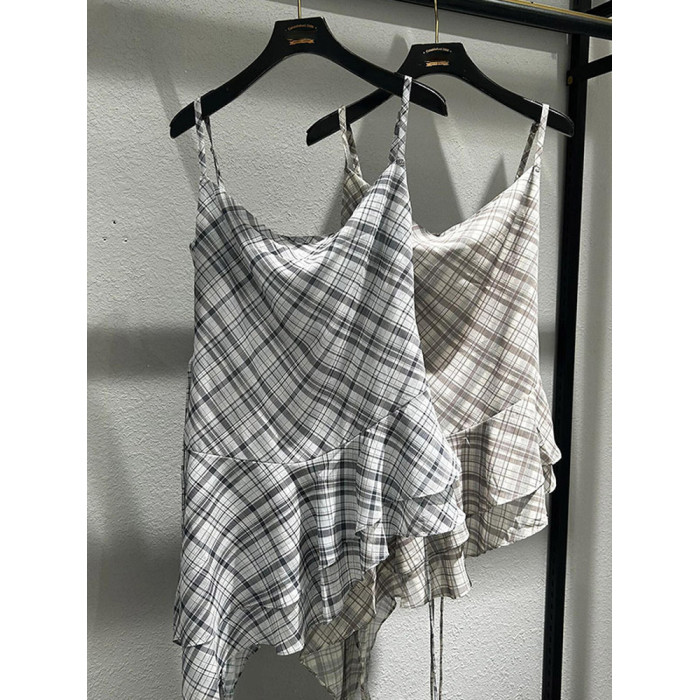 MOU*Y保真!6月新款 日系不規則下擺格紋修身吊帶衫028ISA33-4091