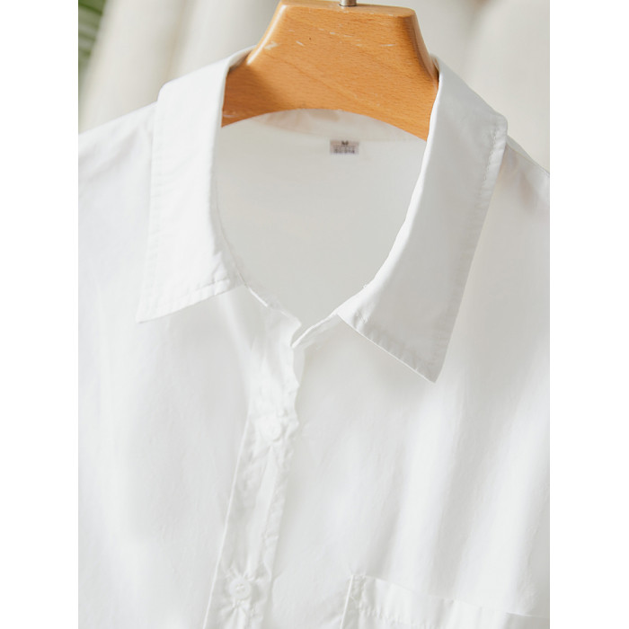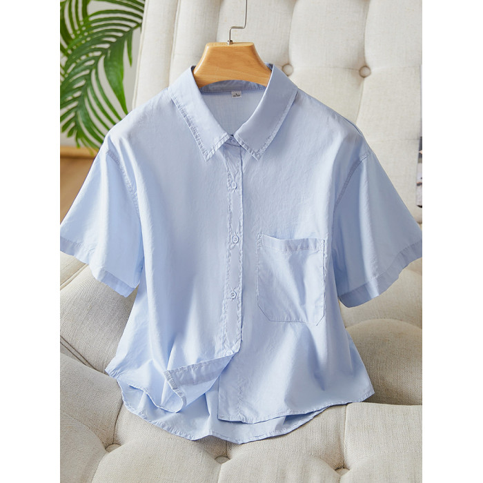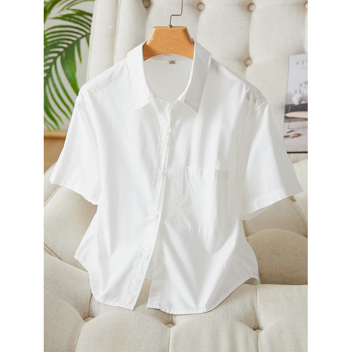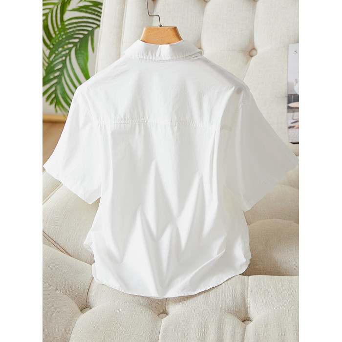 2025夏季韓版寬松白色短袖襯衫女純棉設計感短款小個子上衣女襯衣