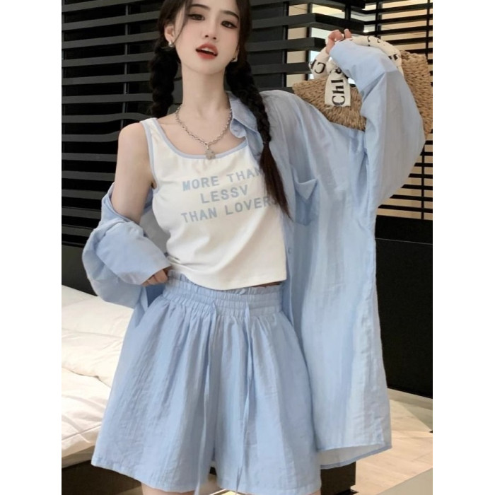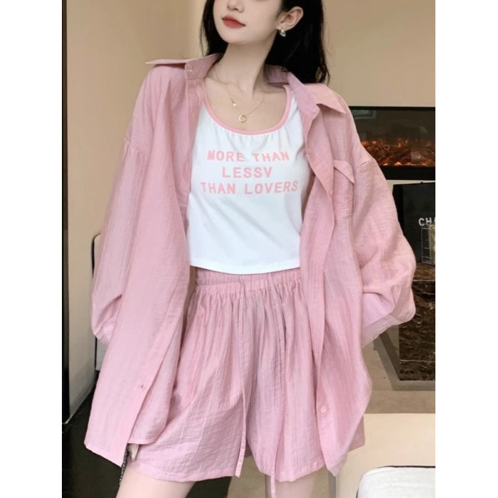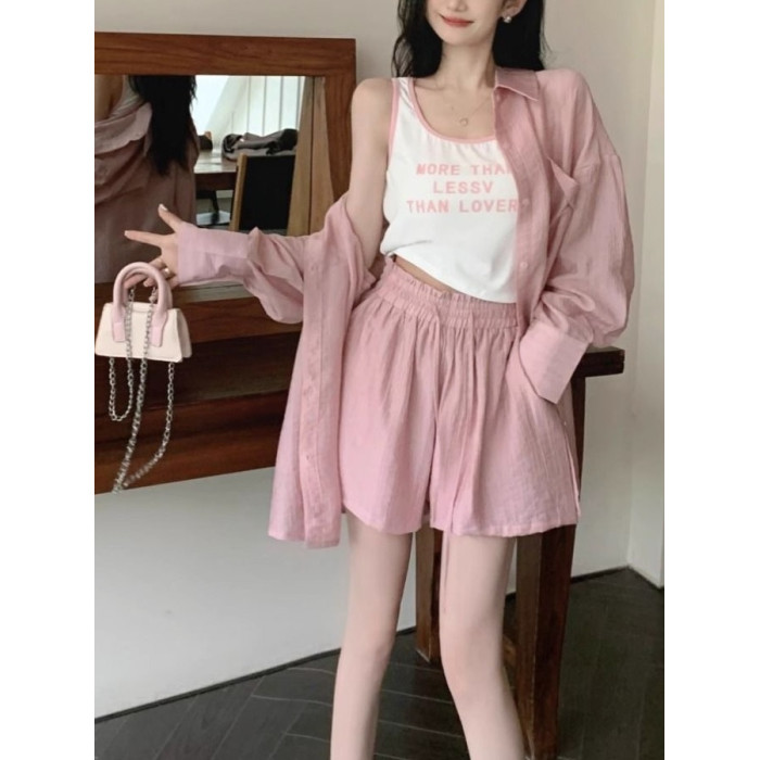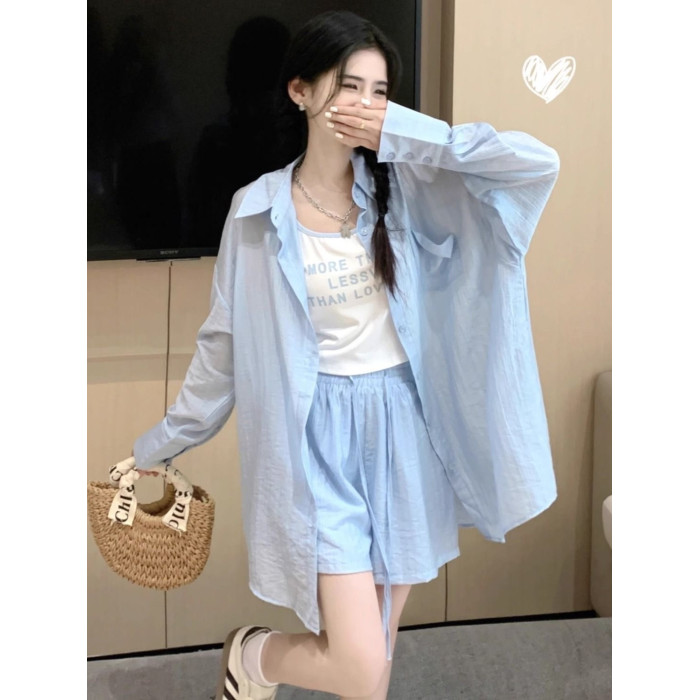 胖貴貴大碼胖mm休閒運動套裝女夏洋氣減齡輕薄防曬顯瘦襯衫短褲女