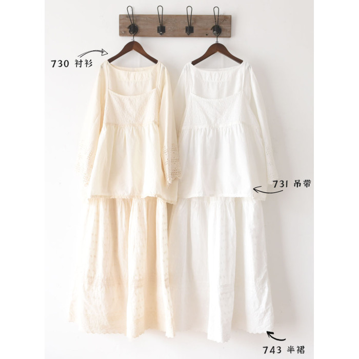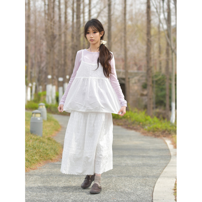 日系刺綉吊帶衫731森女春夏純棉薄款花邊寬松A字曡穿外穿套頭背心