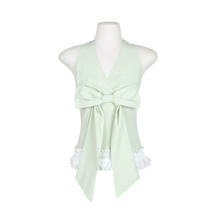 CZ ZHANG夏法式蕾絲邊拼接系帶掛脖修身吊帶衫女露背性感美背小衫