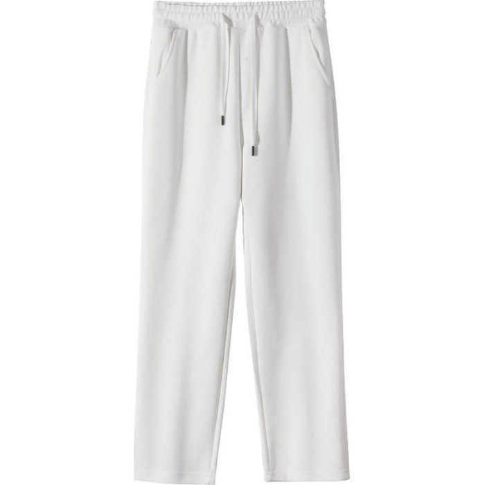 320g純棉濶腳衛褲春秋款男同款純色寬松褲子休閒褲直筒平口長褲