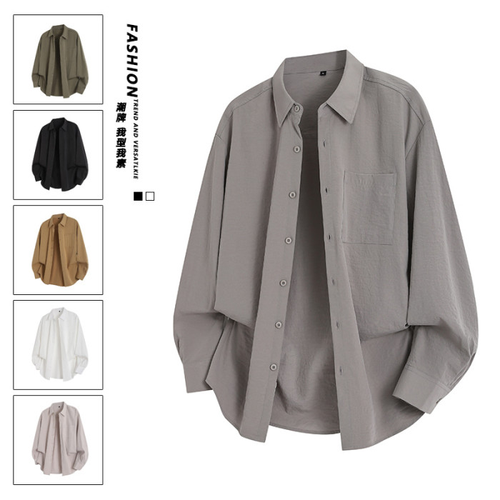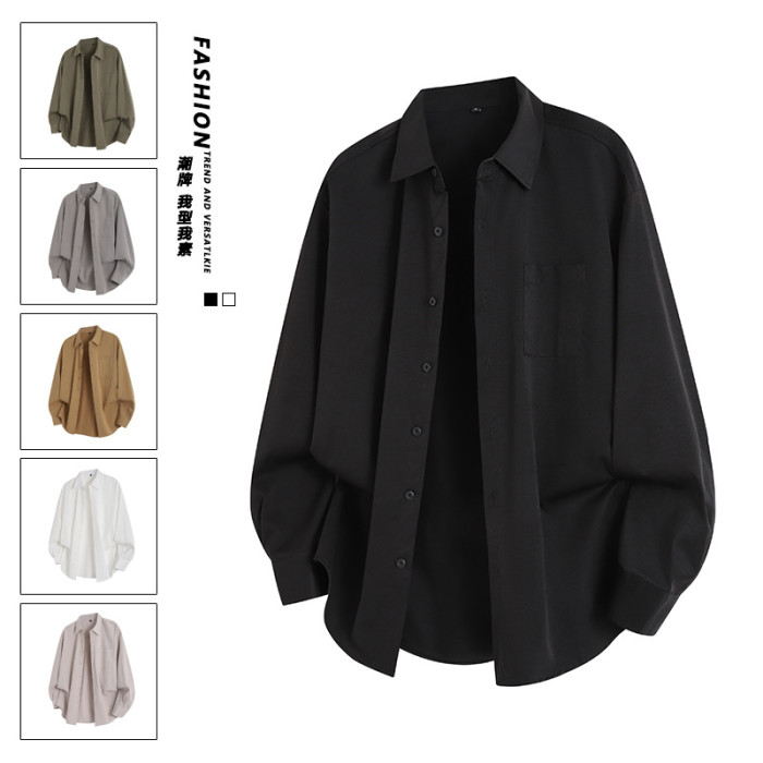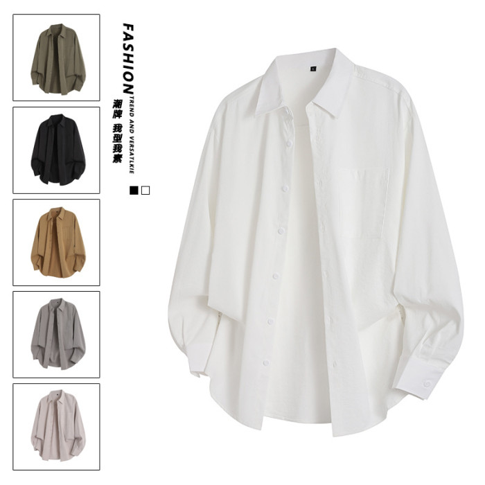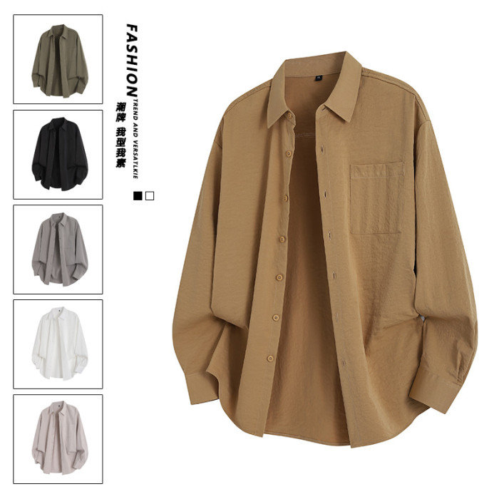 2025年春秋新款純色長袖襯衫男