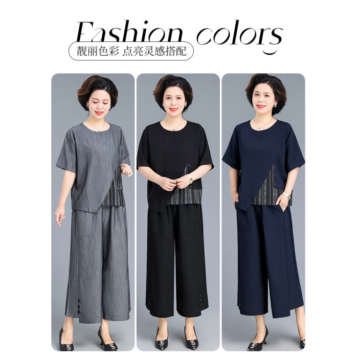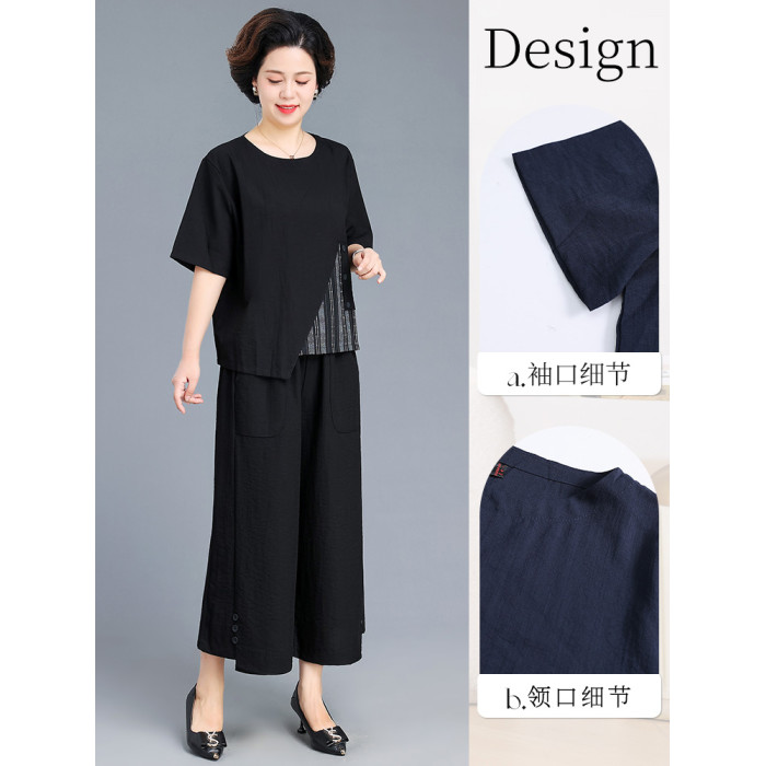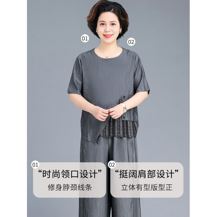 羅矇品牌媽媽夏裝2025新款中老年女裝短袖T恤褲子休閒套裝兩件套