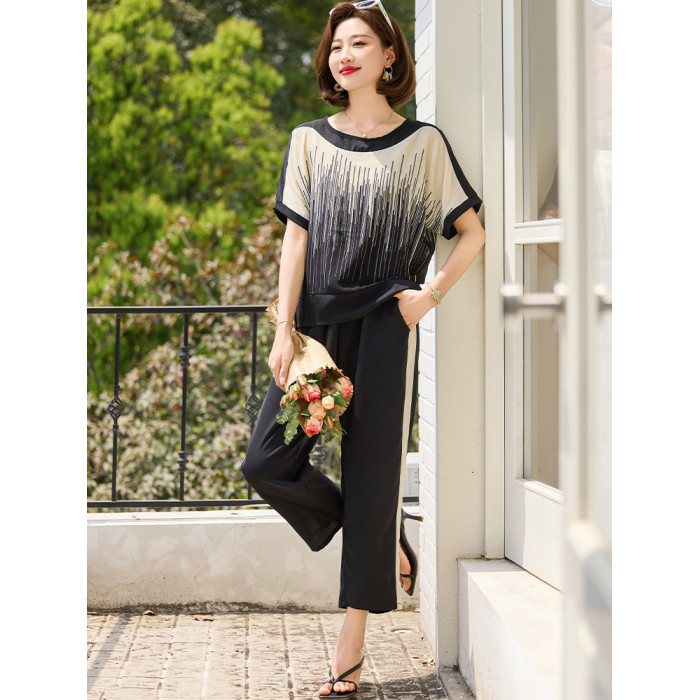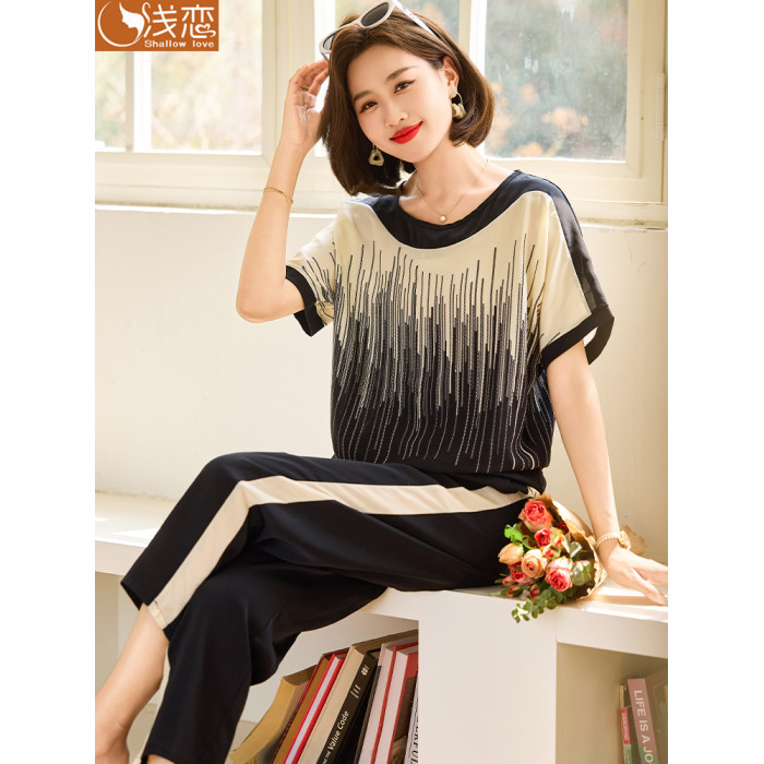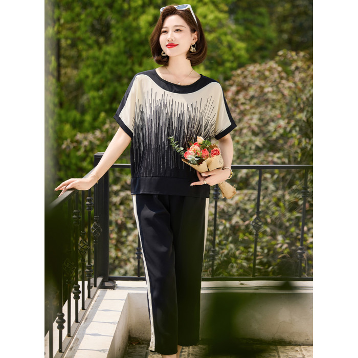 中年媽媽夏季短袖T恤洋氣2025新款中老年女裝夏裝休閒運動服套裝