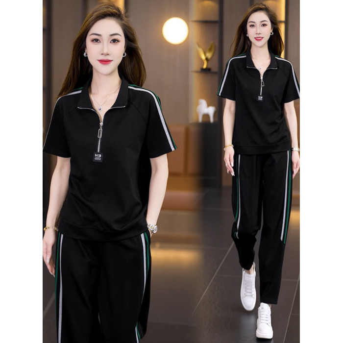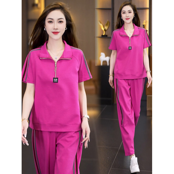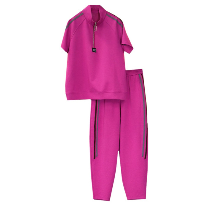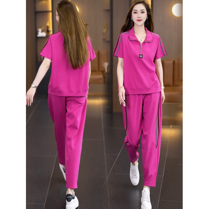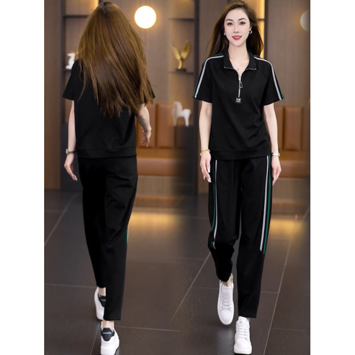 休閒運動套裝女2025新款夏大碼遮肚顯瘦洋氣減齡上衣哈倫褲兩件套