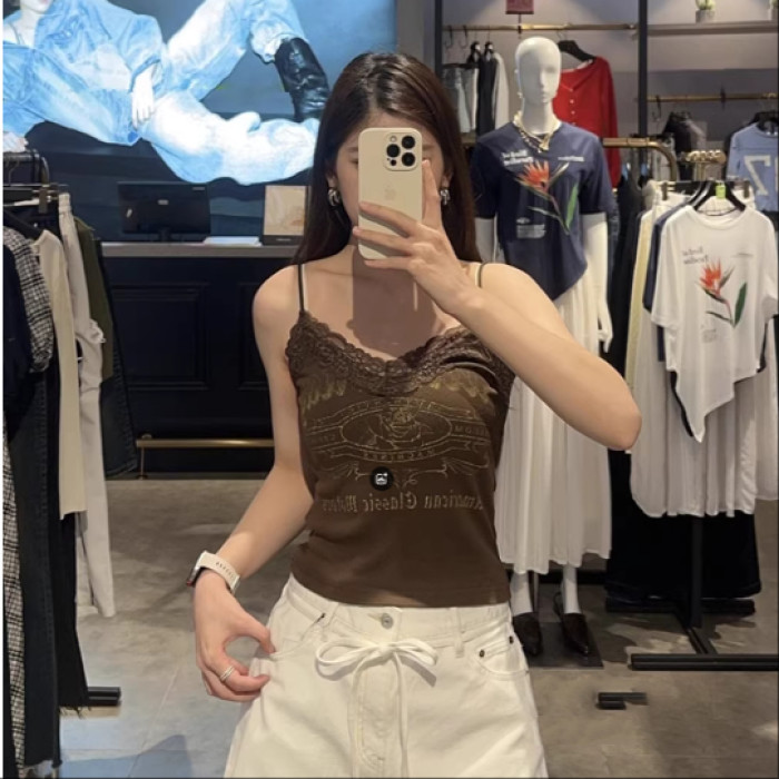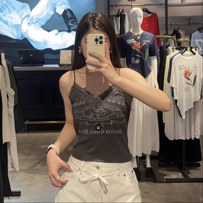 2025夏季新款M家蕾絲上衣打底做舊復古背心吊帶衫女