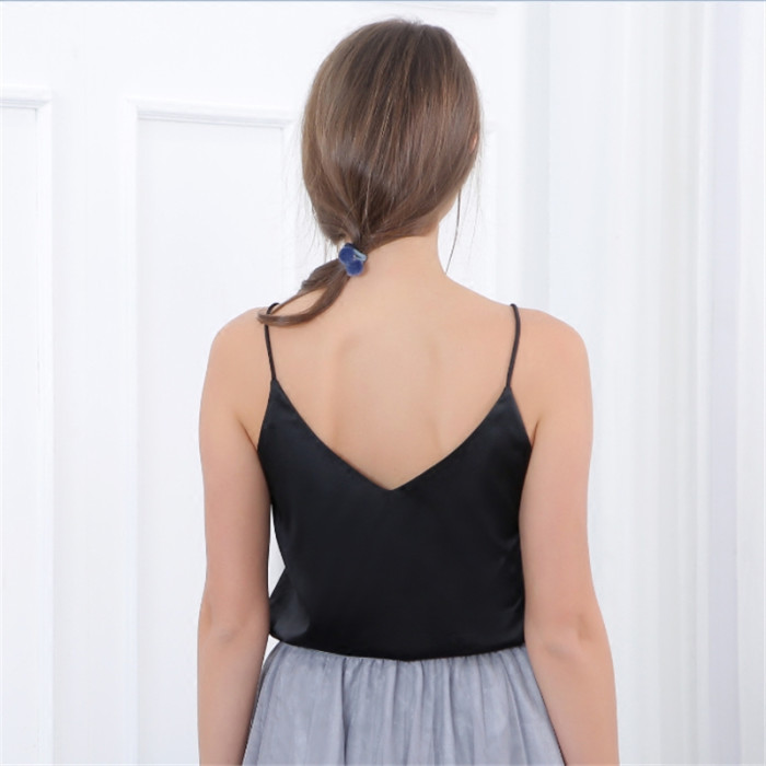夏秋內搭吊帶背心女潮 V領彈力緞仿真絲吊帶衫純色打底衫無袖上衣
