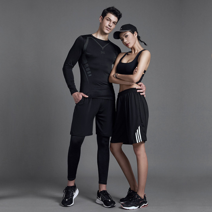 健身房運動套裝男夏季緊身衣跑步瑜伽服籃球服裝裝備夜跑訓練晨跑