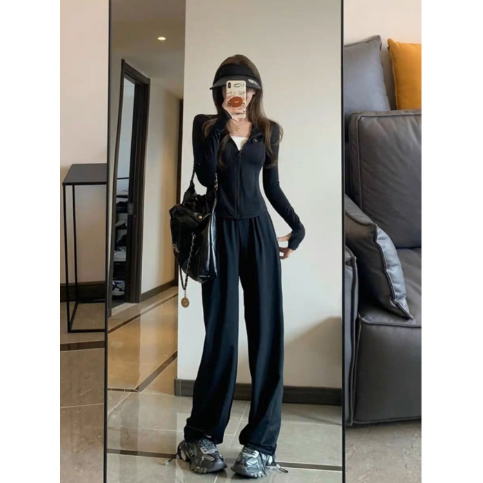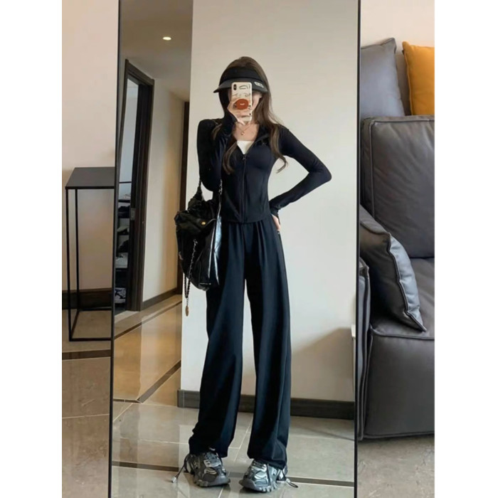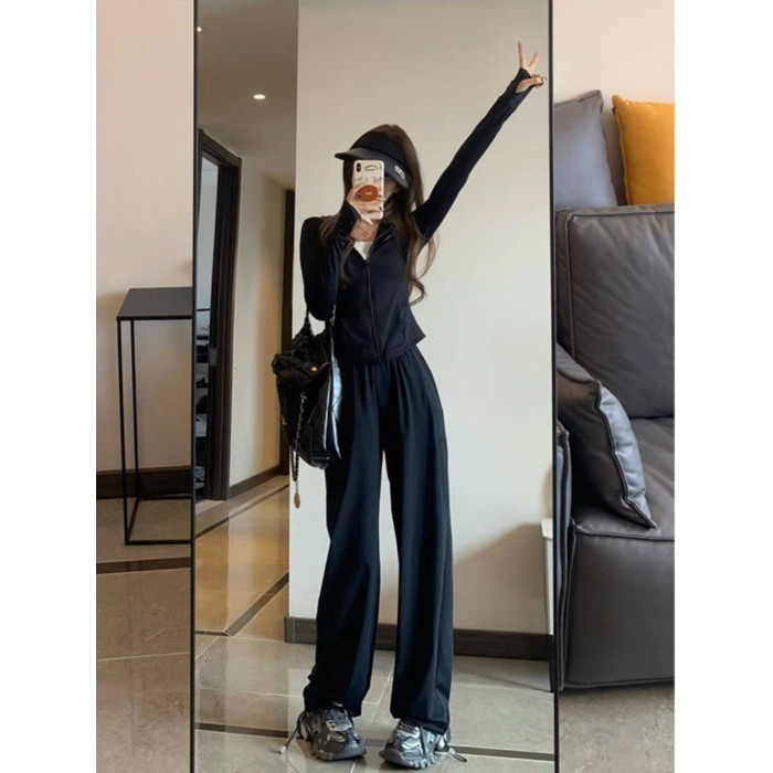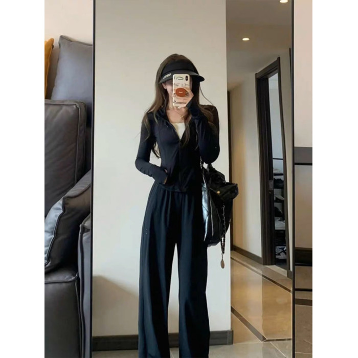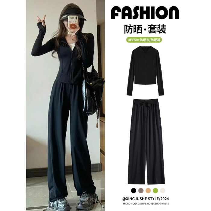 修身瑜伽服冰絲防曬衣休閒運動套裝女夏季薄款2025新款時尚兩件套