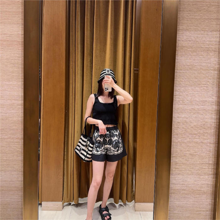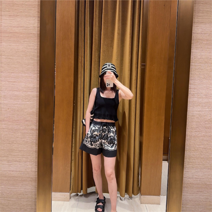 2025春夏新款女裝時尚氣質黑色花邊領針織吊帶衫SFPPU02584