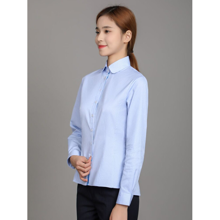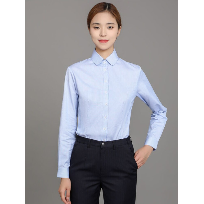 2023浦髮銀行新款行服襯衫門襟織帶女襯衣浦髮工作服修身條紋工裝