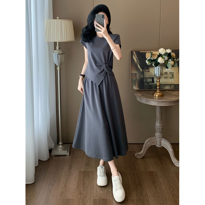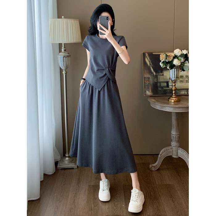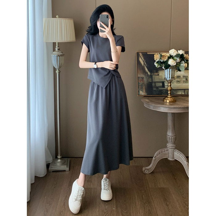 高級感休閒運動套裝女夏季2025新款時尚減齡長裙一整套短袖兩件套