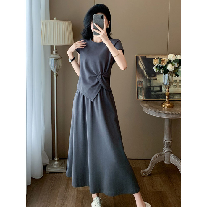 灰色 套裝(短袖上衣+半身裙)