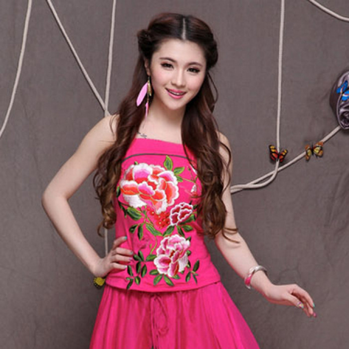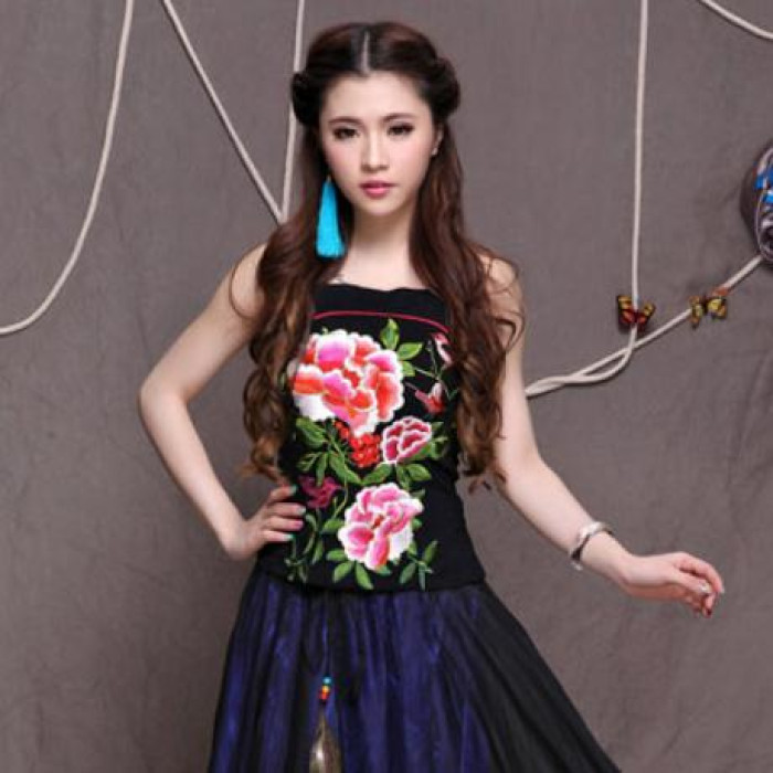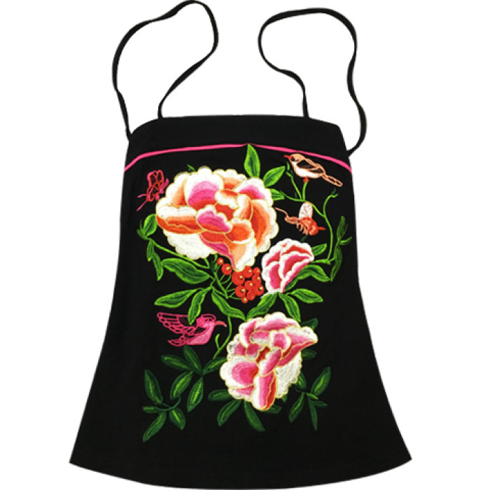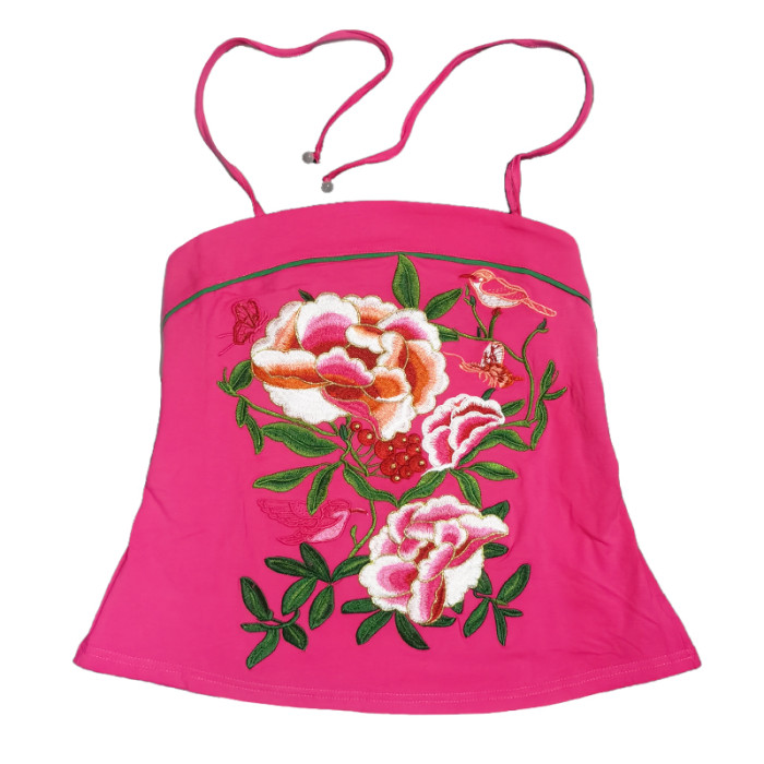 民族風復古國潮打底衫 夏季掛脖系帶女背心 重工刺綉花外穿吊帶衫