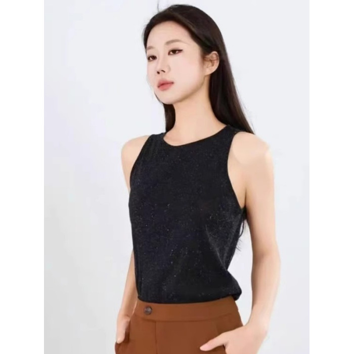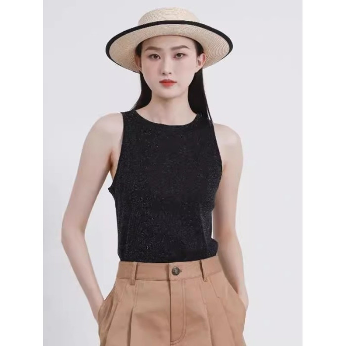 哥弟阿瑪施正夏季時尚修身老錢風星空亮絲網紗圓領無袖背心吊帶衫