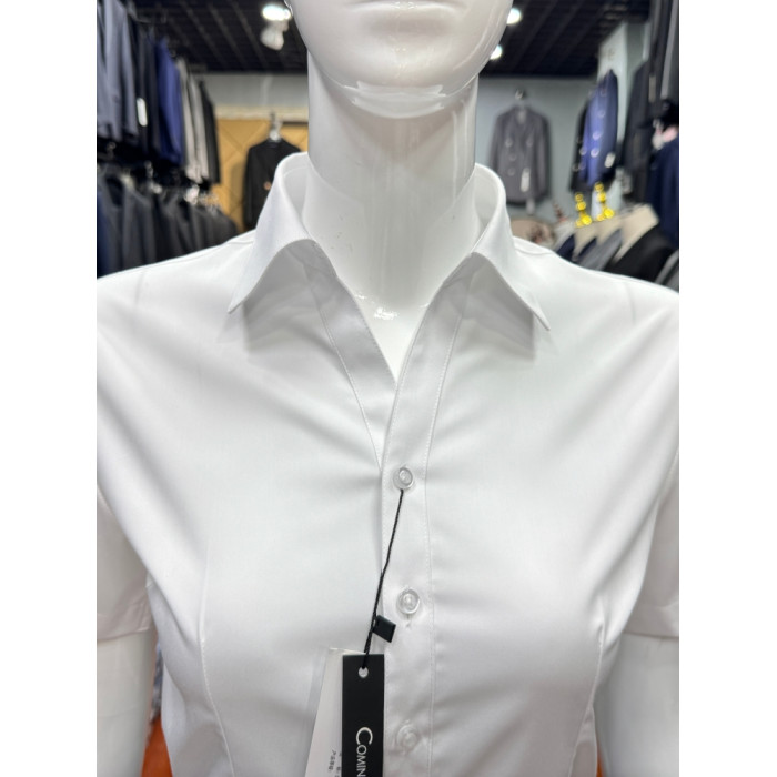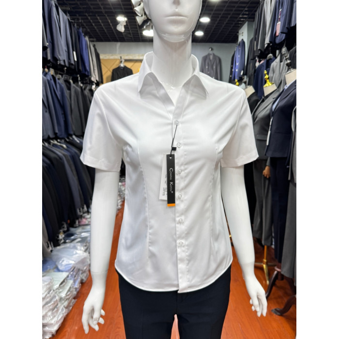 V領白襯衫女短袖夏季竹纖維彈力大碼上班面試職業裝工作服女襯衣