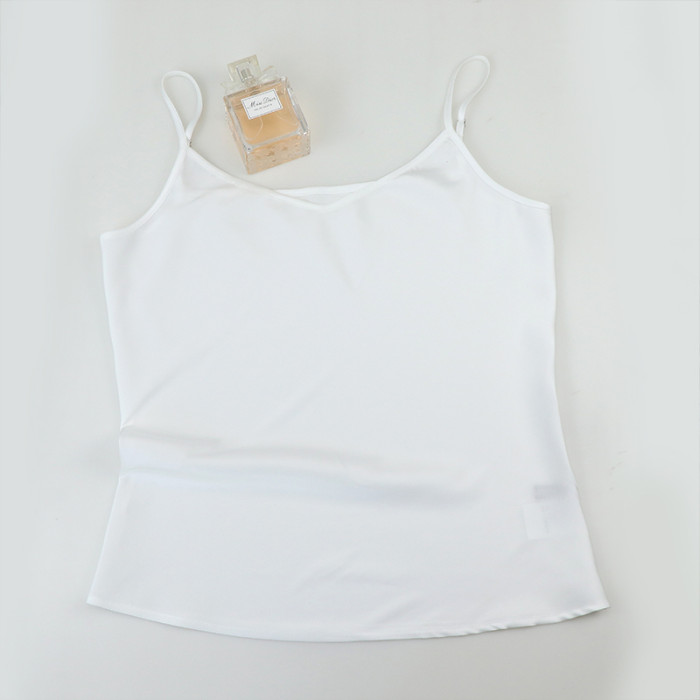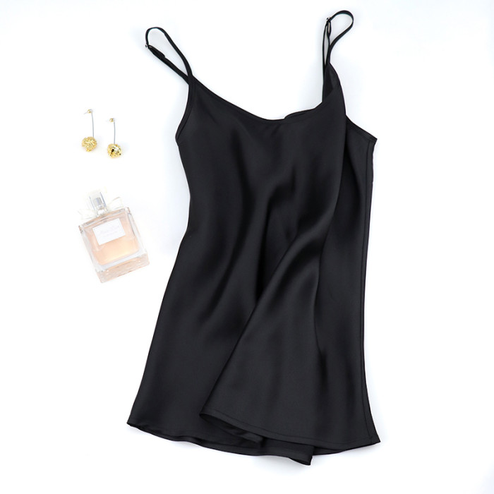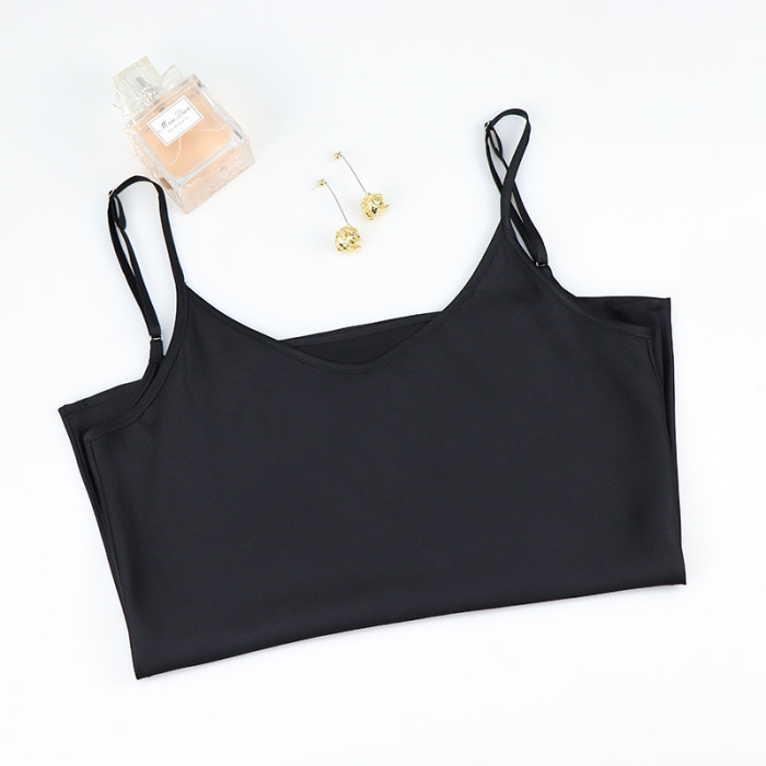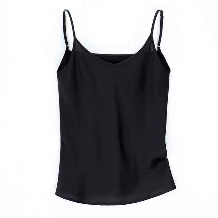 典默2023春夏新款黑色緞面雪紡吊帶衫百搭上衣打底吊帶背心女內搭