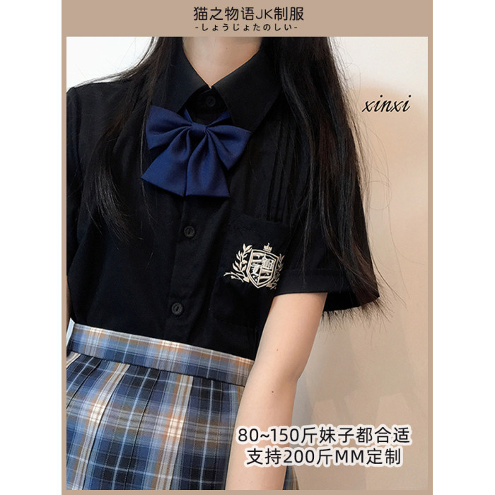 原創JK襯衫短袖 黑無刺綉 48小時髮貨
