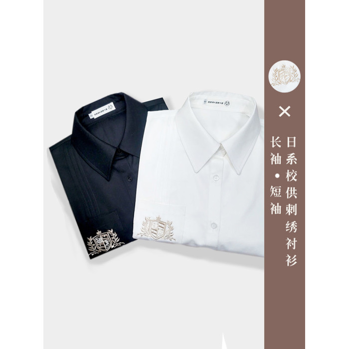 原創JK襯衫金刺綉短袖-黑色 48小時髮貨