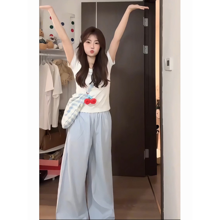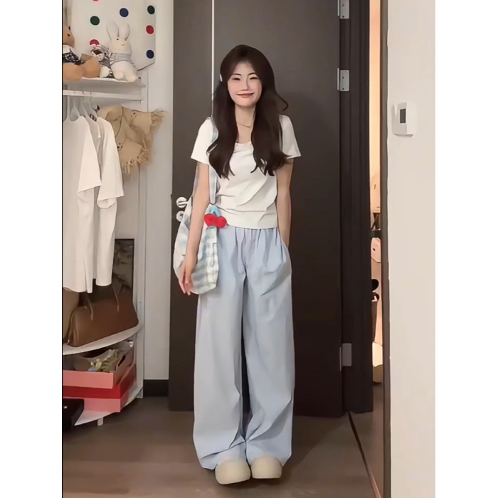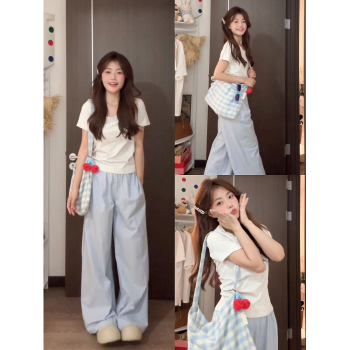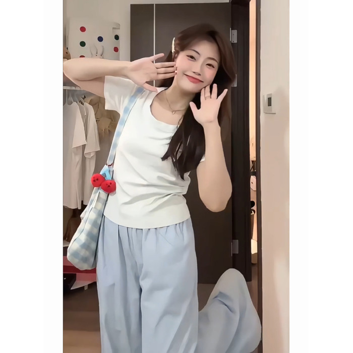 慵懶風穿搭運動套裝女夏季韓系時尚高級感正肩短袖長褲休閒兩件套