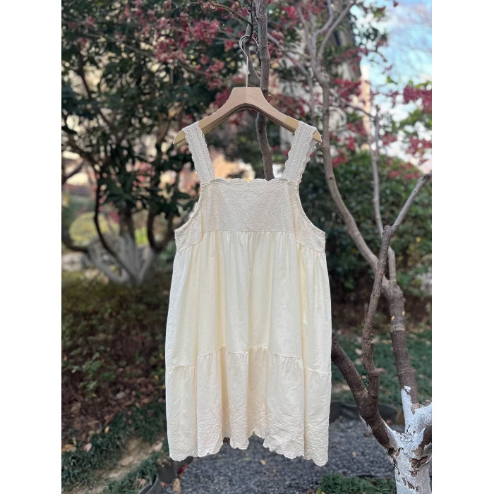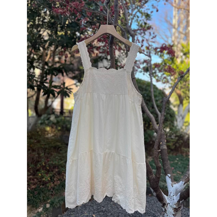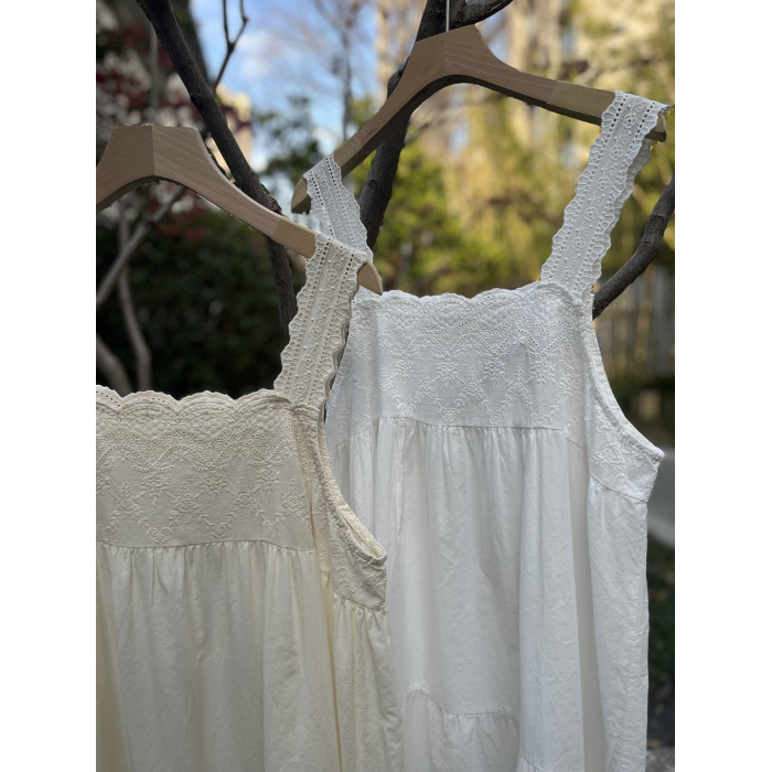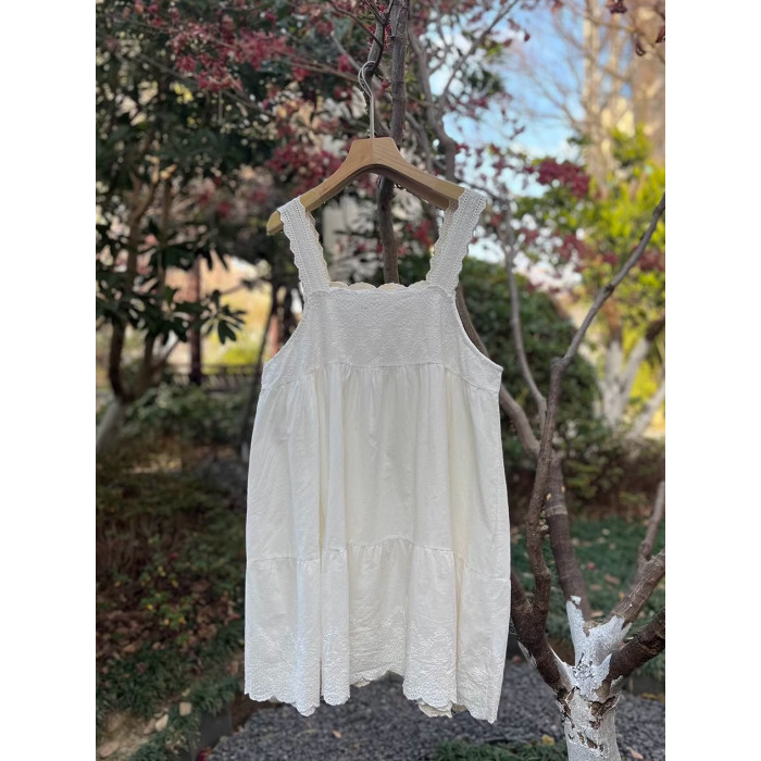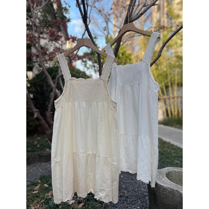 甜美森女系純棉薄款刺綉吊帶衫寬肩帶中長款吊帶裙打底曡穿裙子女