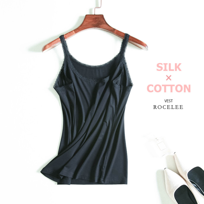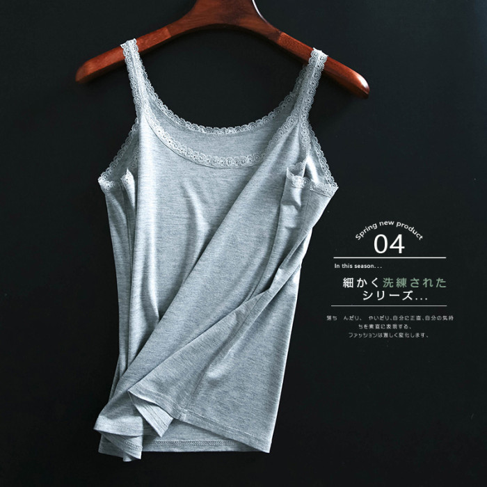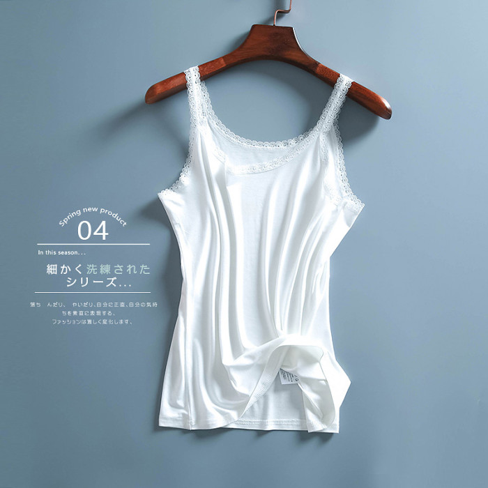 四季可穿百搭親膚透氣舒適修身吊帶衫女款蕾絲肩帶高彈力打底背心