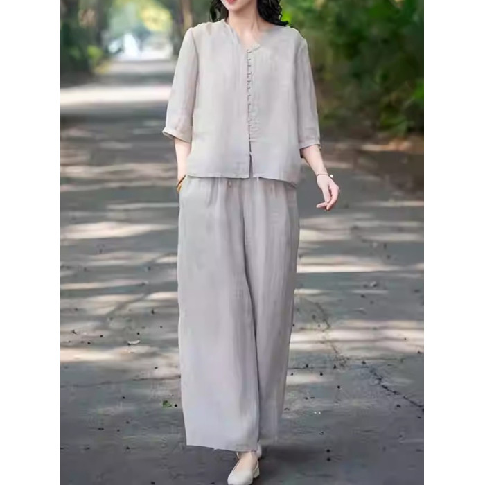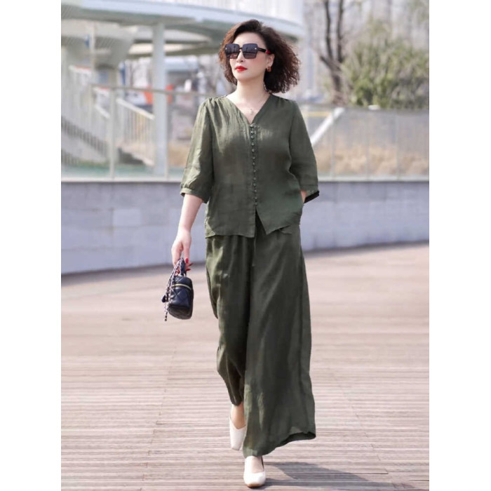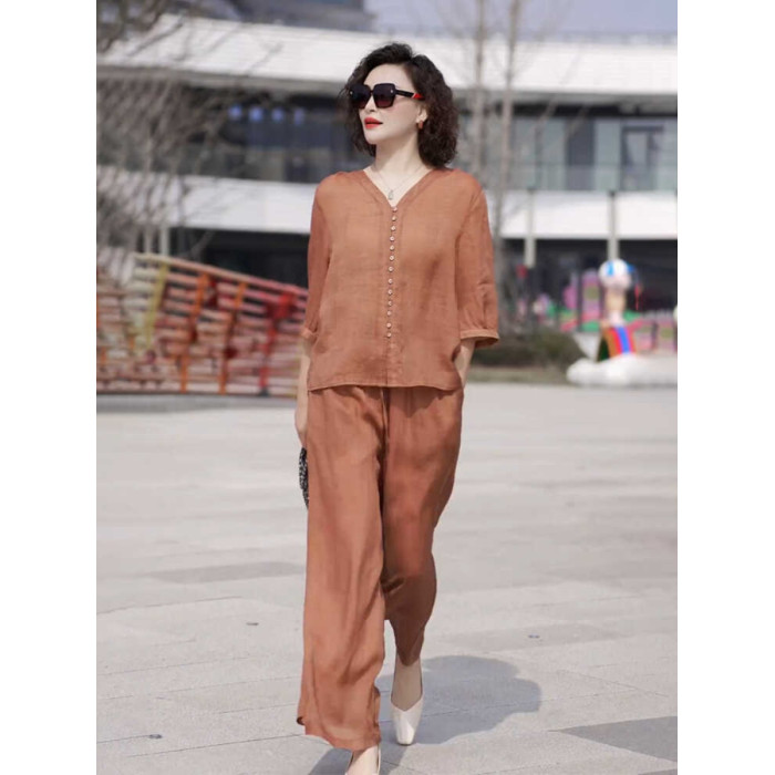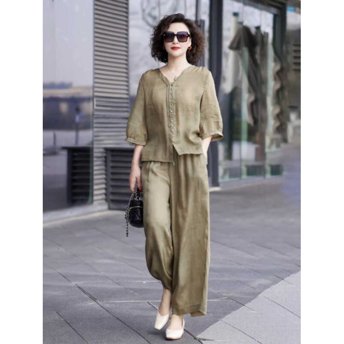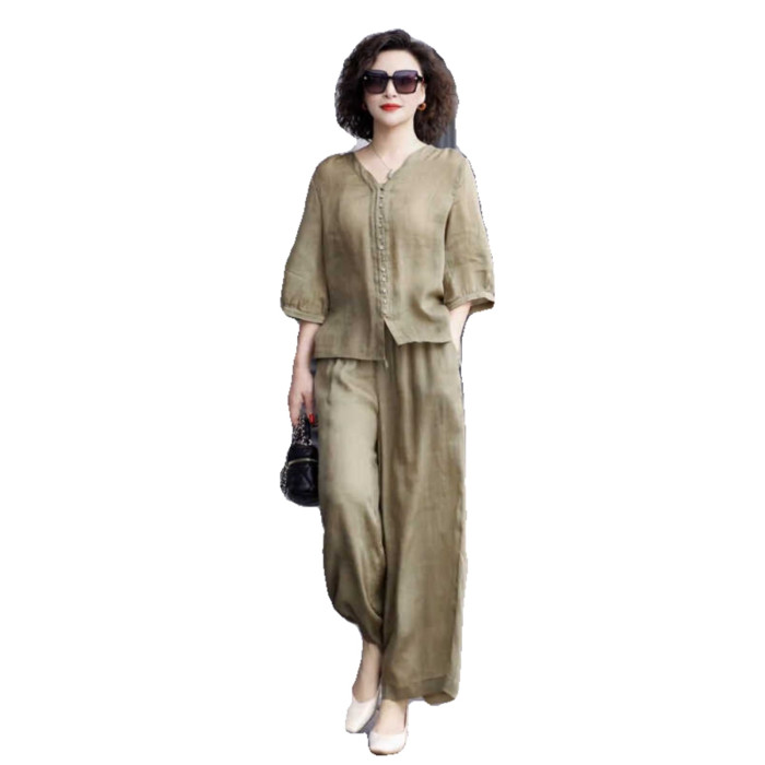 歐洲站棉麻休閒運動套裝女夏季薄款2025高級感時尚亞麻寬松兩件套