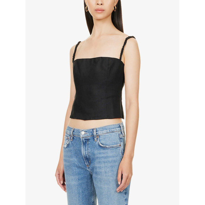 小衆設計輕奢純亞麻露背上衣性感純欲風減齡方領吊帶衫修身背心夏