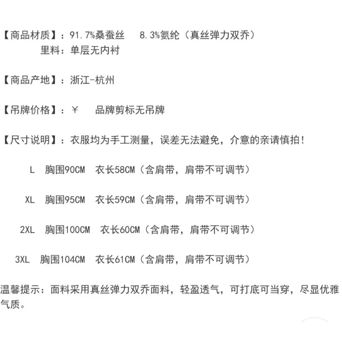 真絲吊帶衫小背心女2024新款夏桑蠶絲打底衫彈力雙喬修身無袖背心