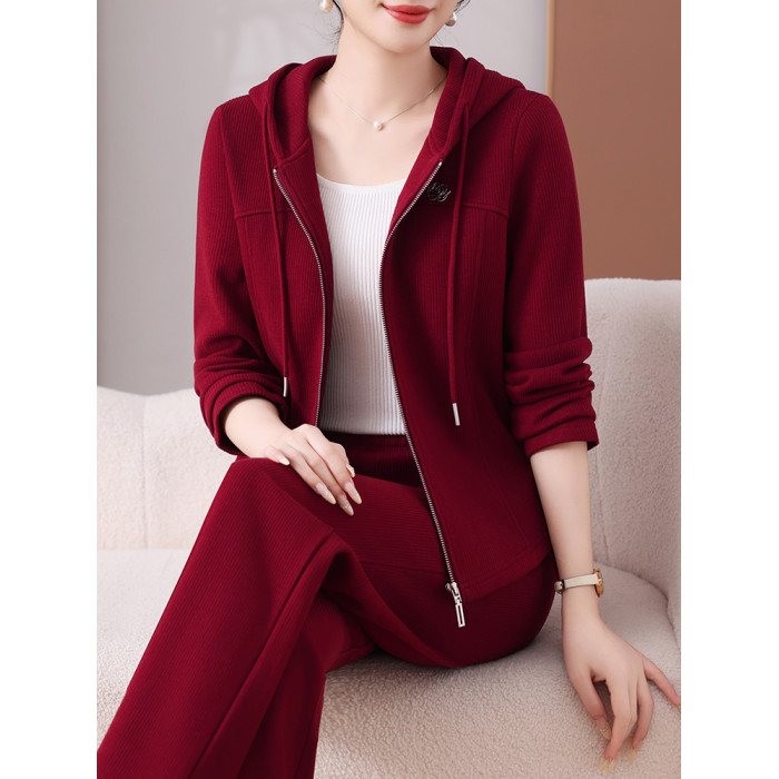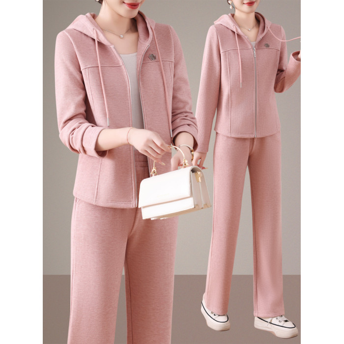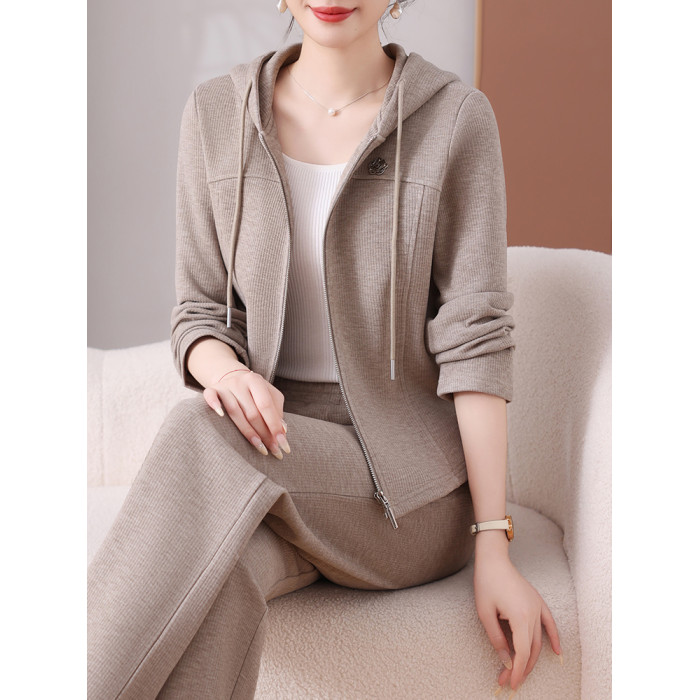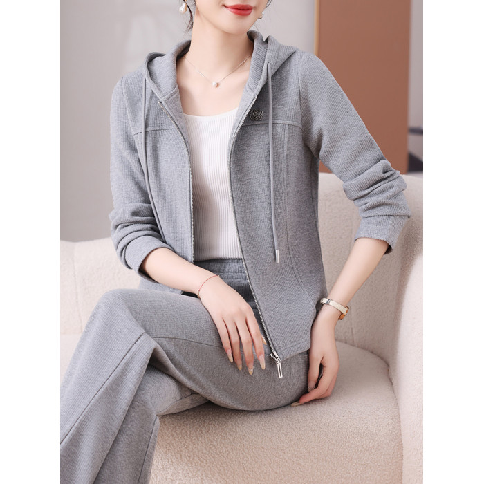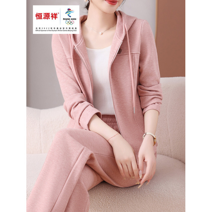 恒源祥彩羊休閒運動套裝女春秋時尚連帽開衫小個子氣質顯瘦兩件套