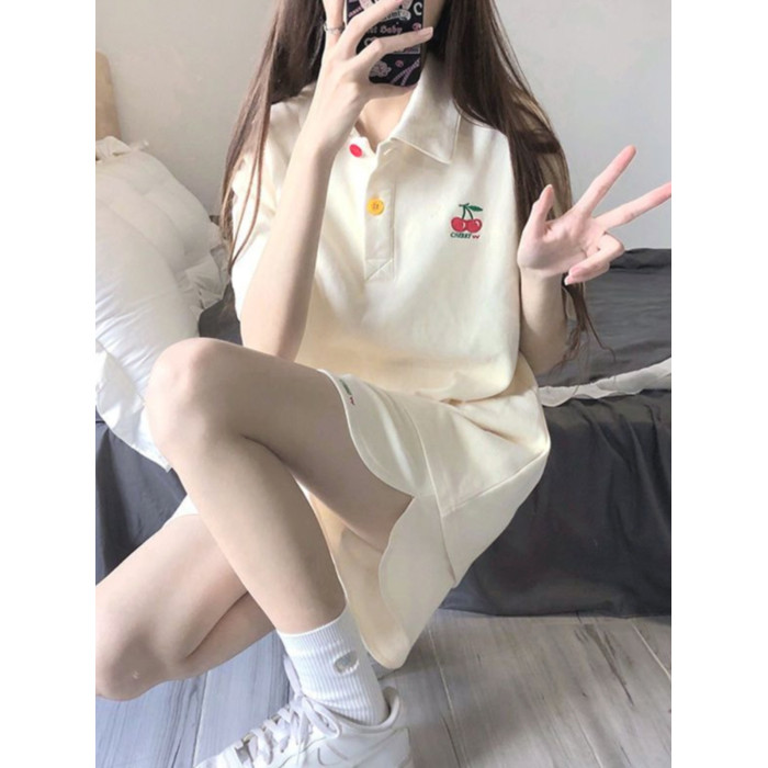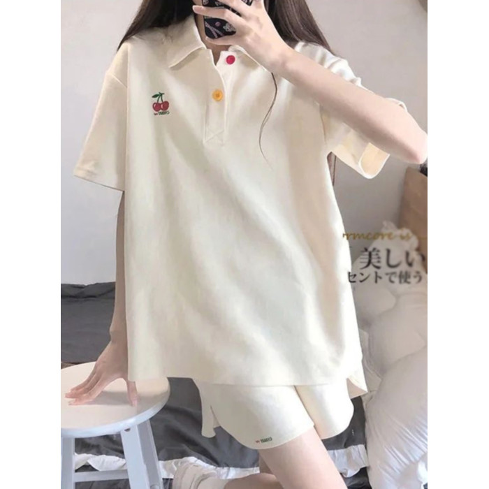 少女學生運動套裝女夏日系小清新短褲兩件套Polo衫休閒運動服寬松