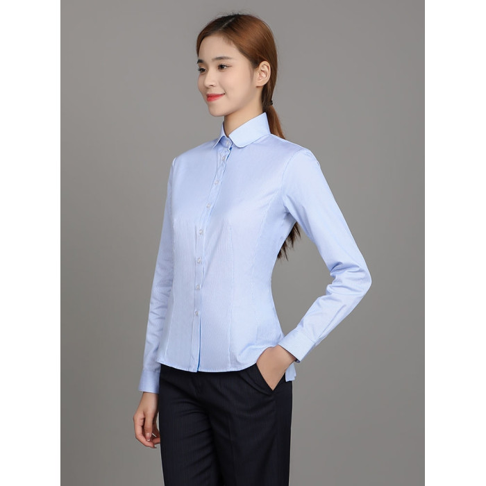 浦髮銀行新款行服女士襯衫門襟織帶女襯衣浦髮工作服修身條紋工裝