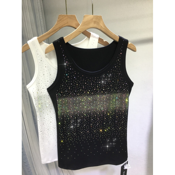 歐貨重工燙鑽背心女棉顯瘦百搭上衣外穿內搭吊帶衫配西裝無袖夏季