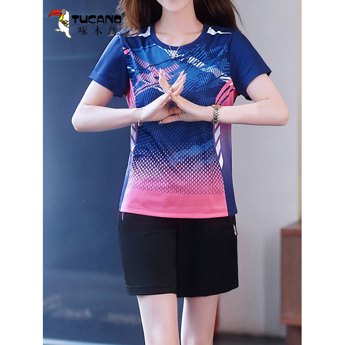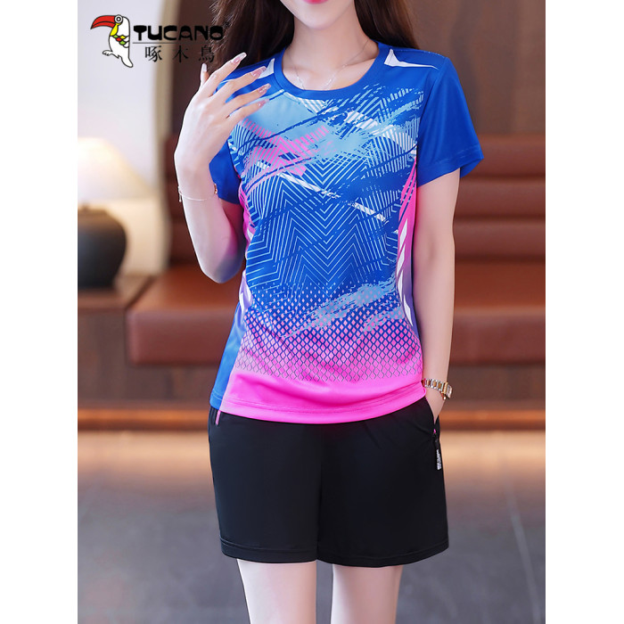 啄木鳥冰絲運動套裝女夏季新款速乾短袖短褲薄款休閒跑步服兩件套