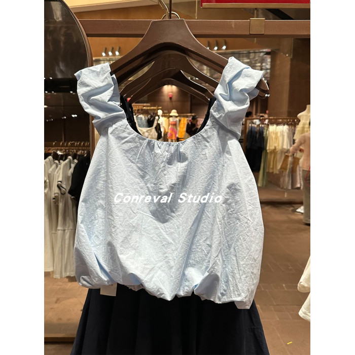 SH&UR短上衣2025夏季新款女裝甜美休閒少女感短款花苞吊帶衫ins