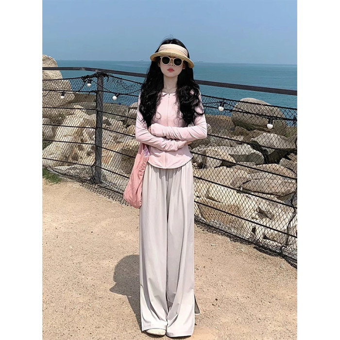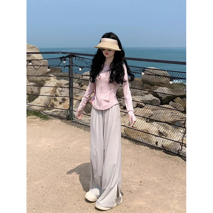 瑜伽服冰絲防曬衣休閒運動套裝女夏季2025新款修身顯瘦時尚兩件套
