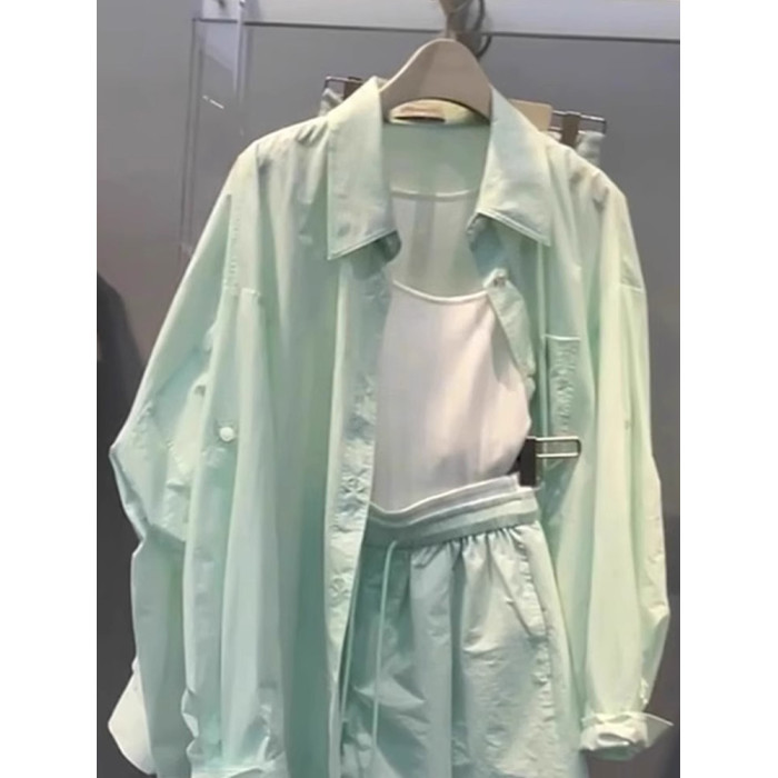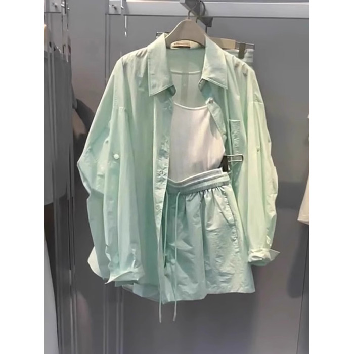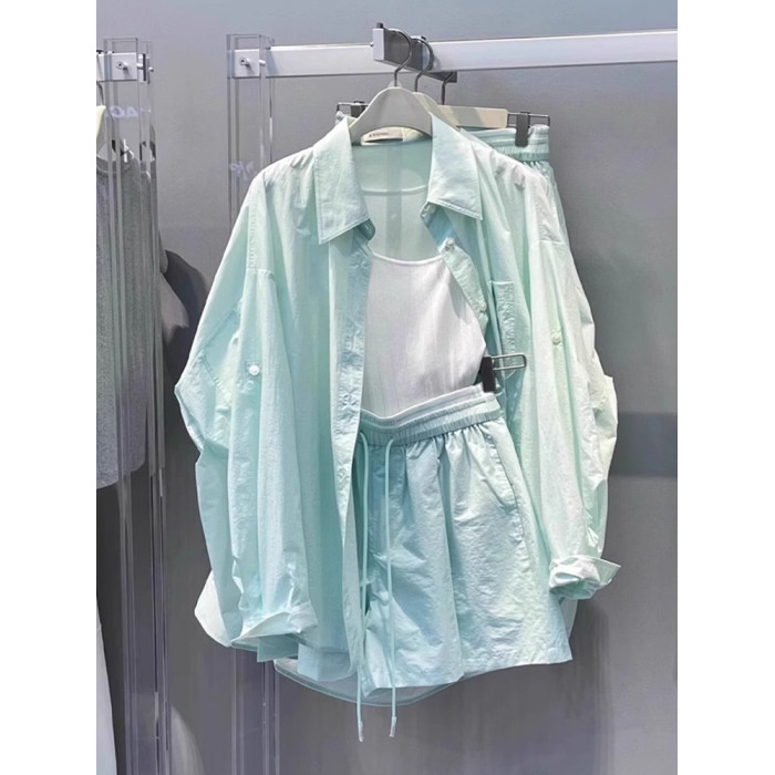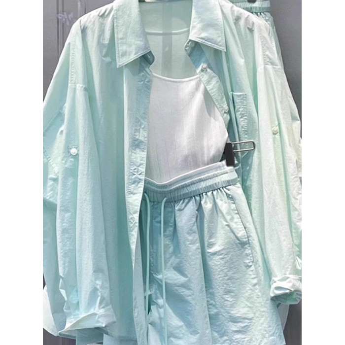 高級感運動套裝女夏季歐貨休閒時尚度假襯衫短褲小香風兩件套減齡