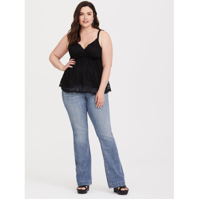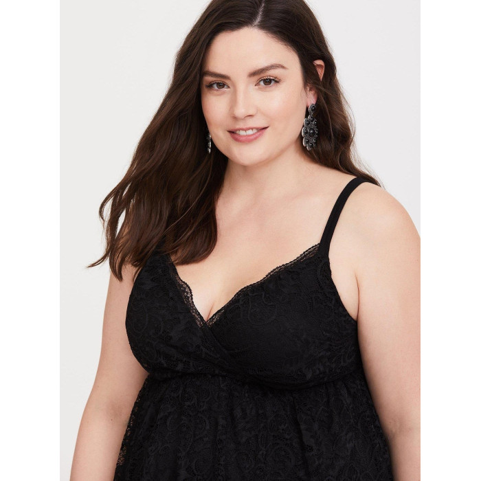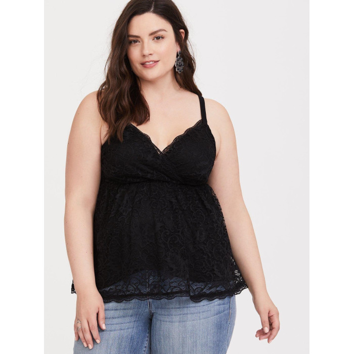 大碼優雅性感V領黑色蕾絲吊帶衫顯瘦遮肚上衣春夏秋季款女裝