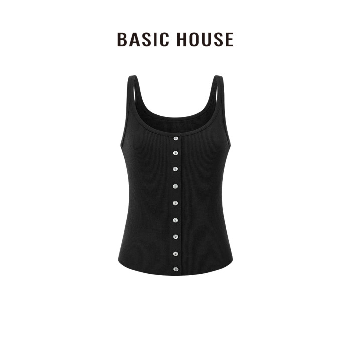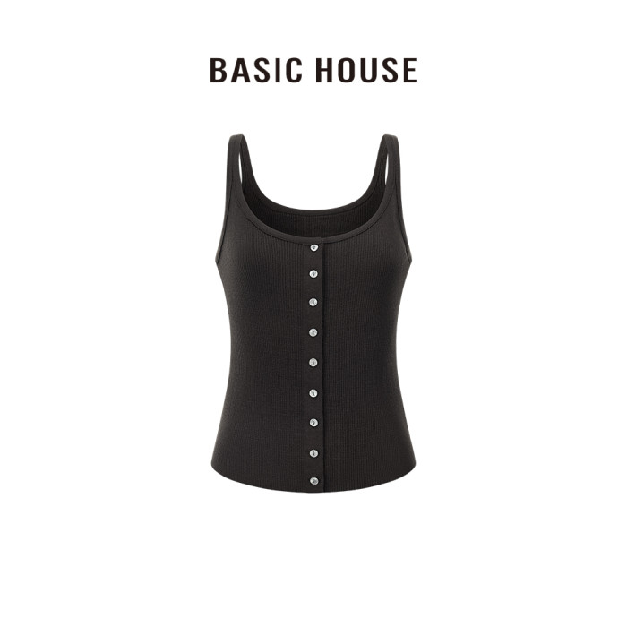 百家好/Basic House純色修身百搭顯瘦多釦針織吊帶衫女無袖背心夏