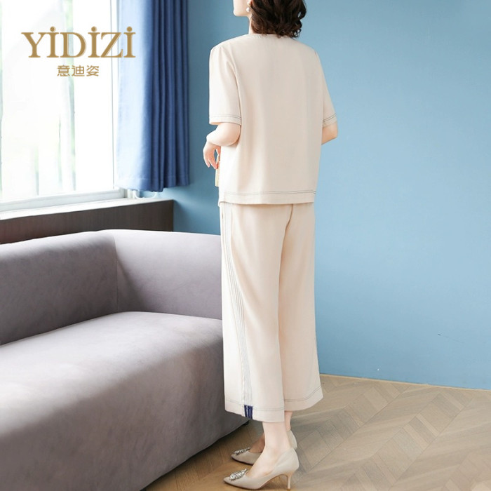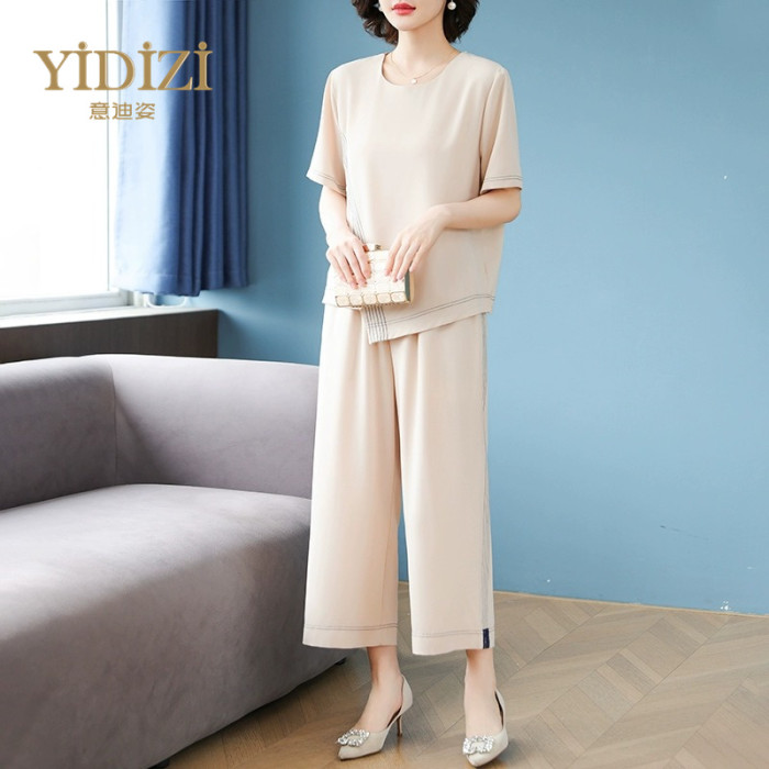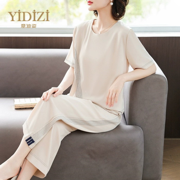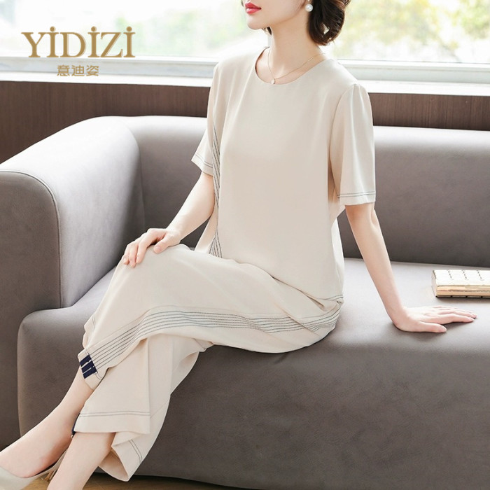 雪紡短袖運動套裝女夏季2025新款親膚高級感休閒T恤上衣服兩件套