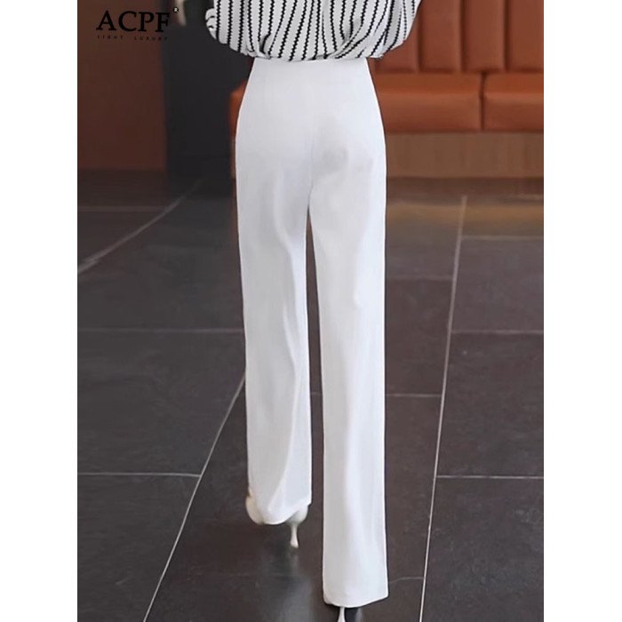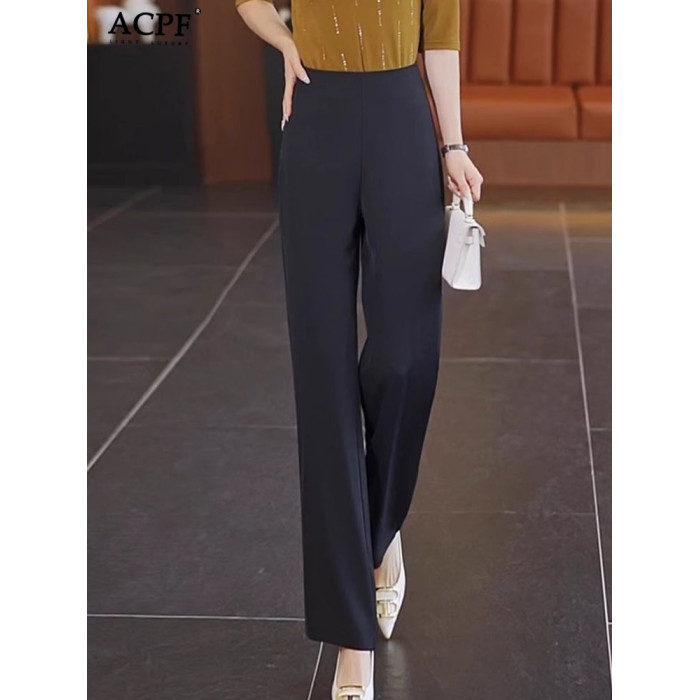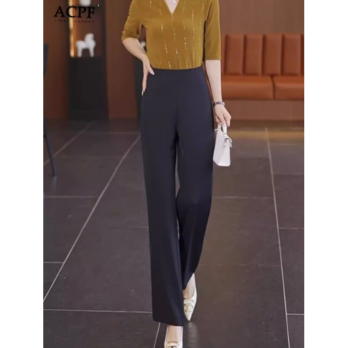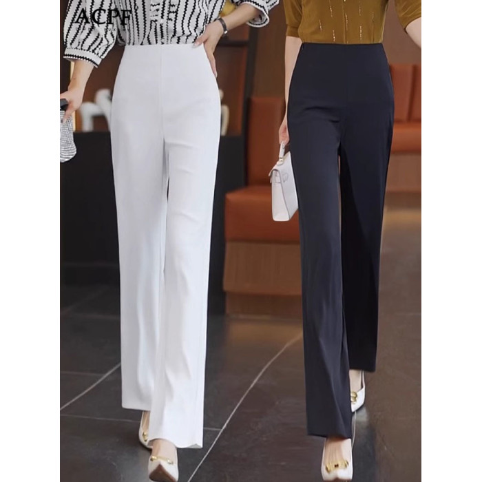 薄款休閒褲女士夏季新款時尚簡約舒適洋氣百搭顯瘦高腰垂感濶腿褲