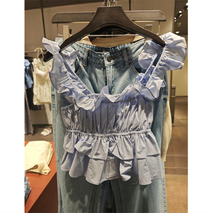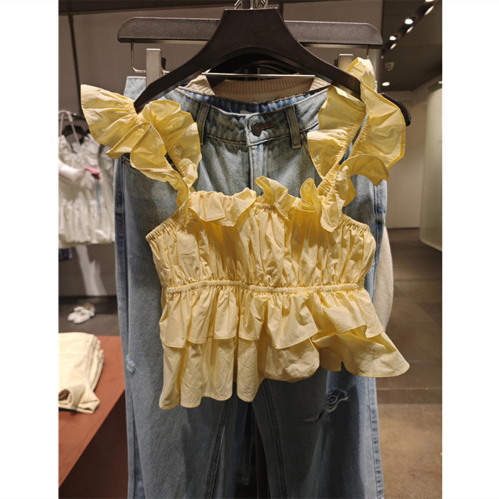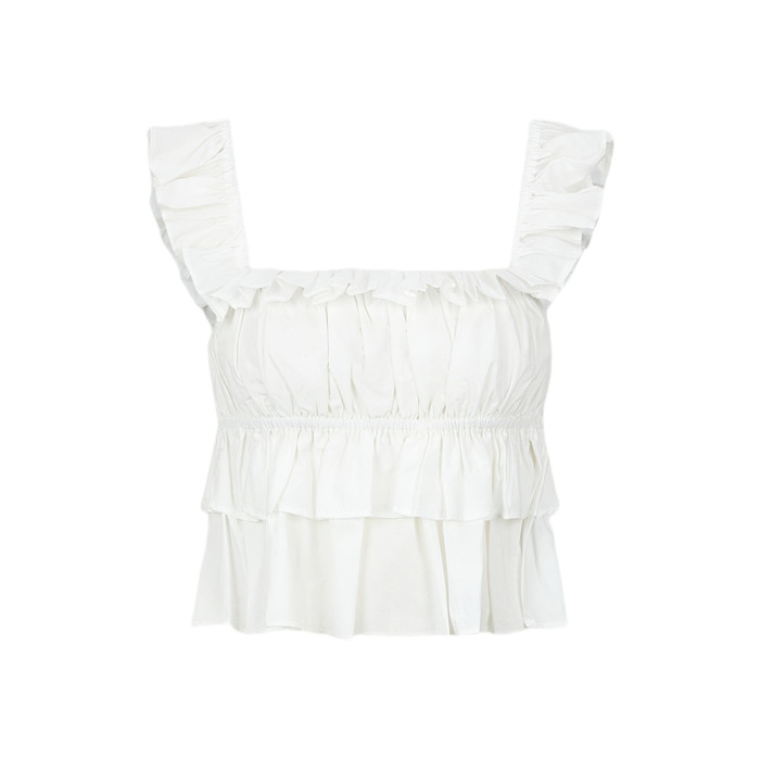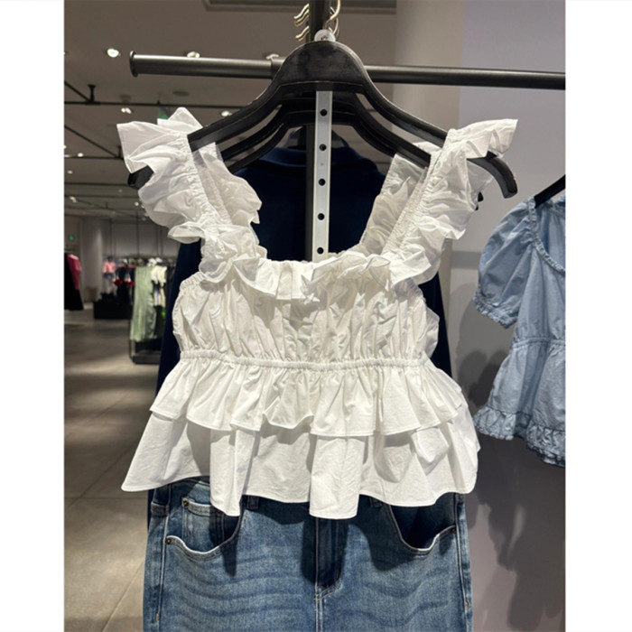 顯瘦通勤女裝2025夏季新款甜美曡層荷葉邊抽褶方領無袖背心吊帶衫