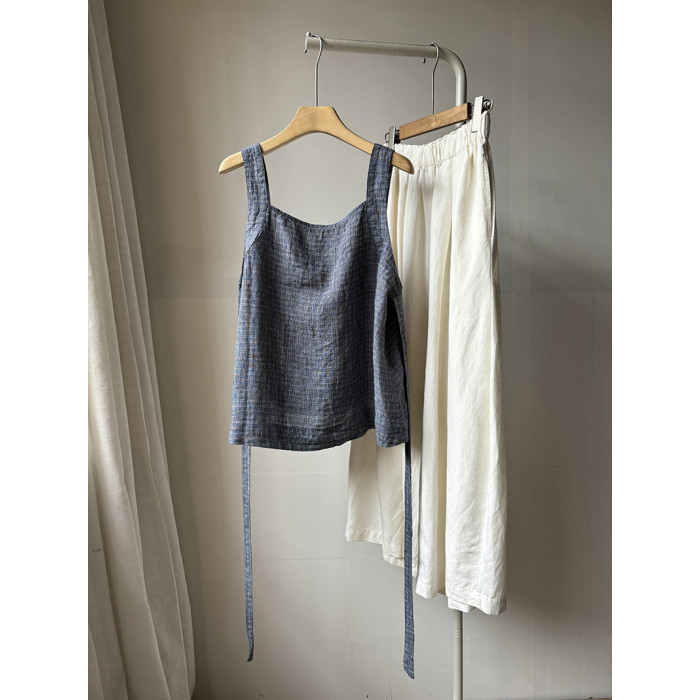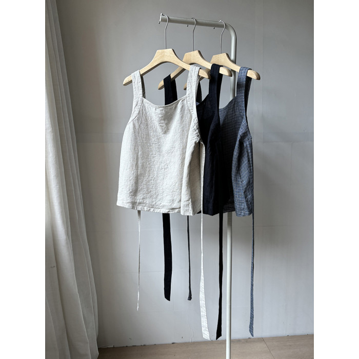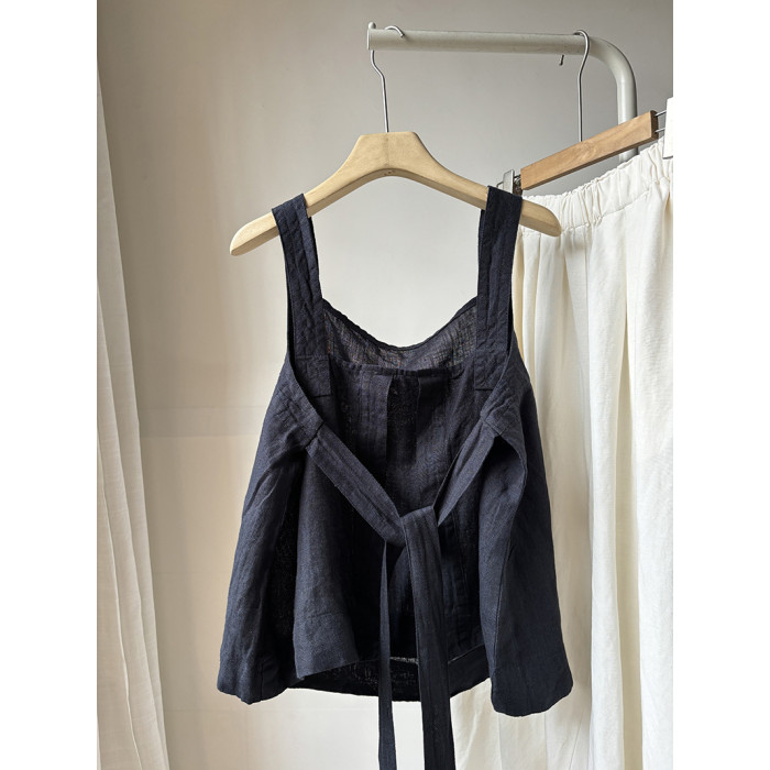 撿漏!日DAN全麻背心 系帶收瘦顯瘦設計感無袖背心吊帶衫女