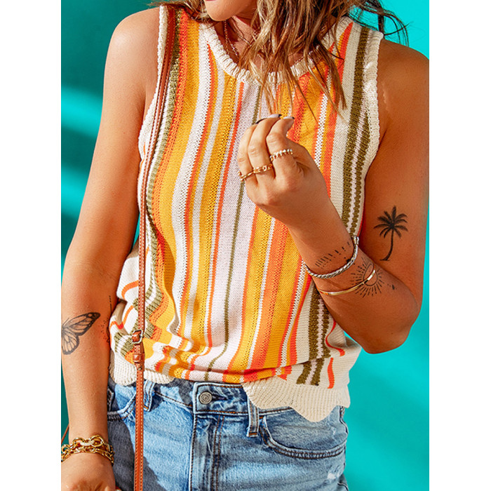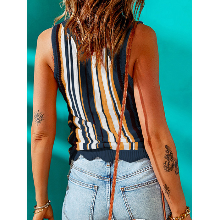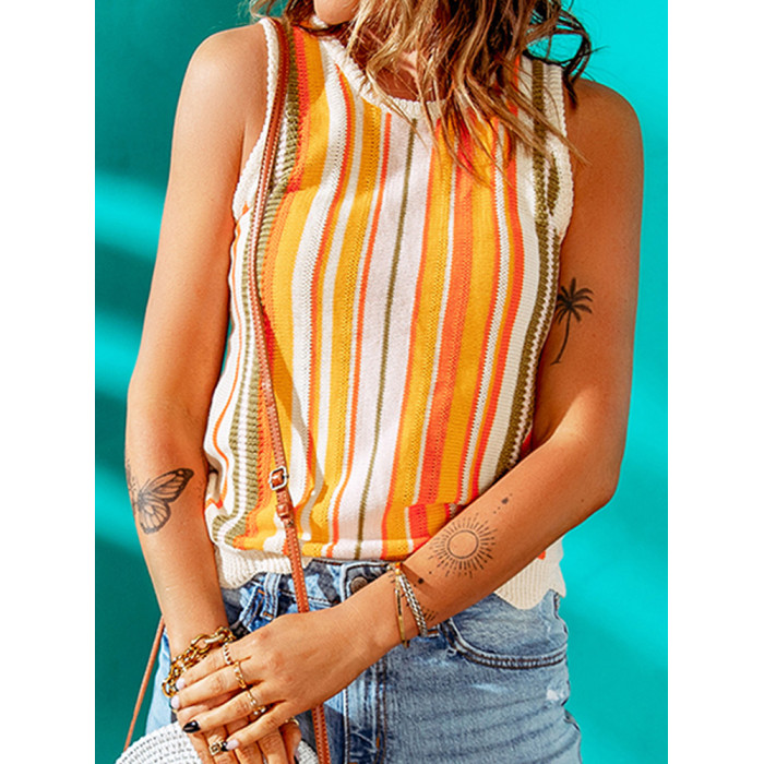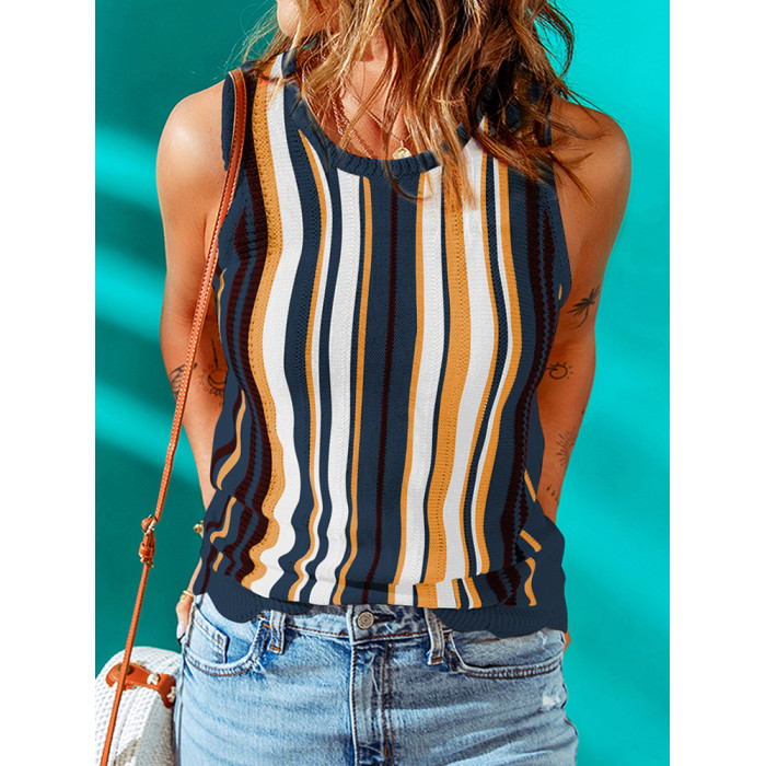 2025夏季新款條紋印花背心女歐美女士修身顯瘦圓領套頭吊帶衫上衣
