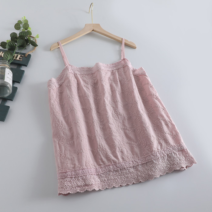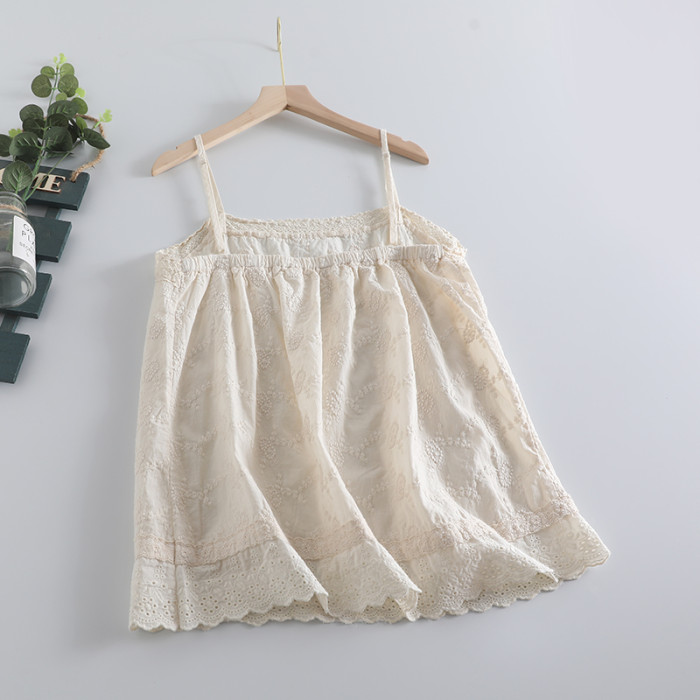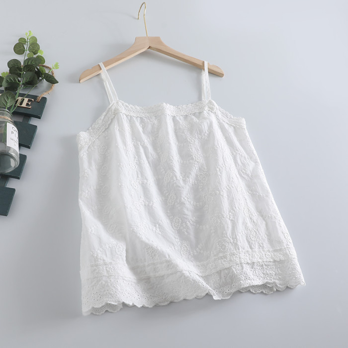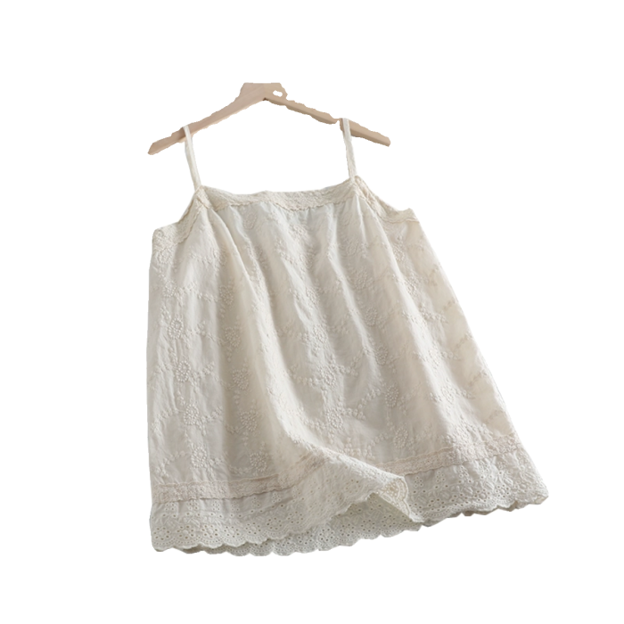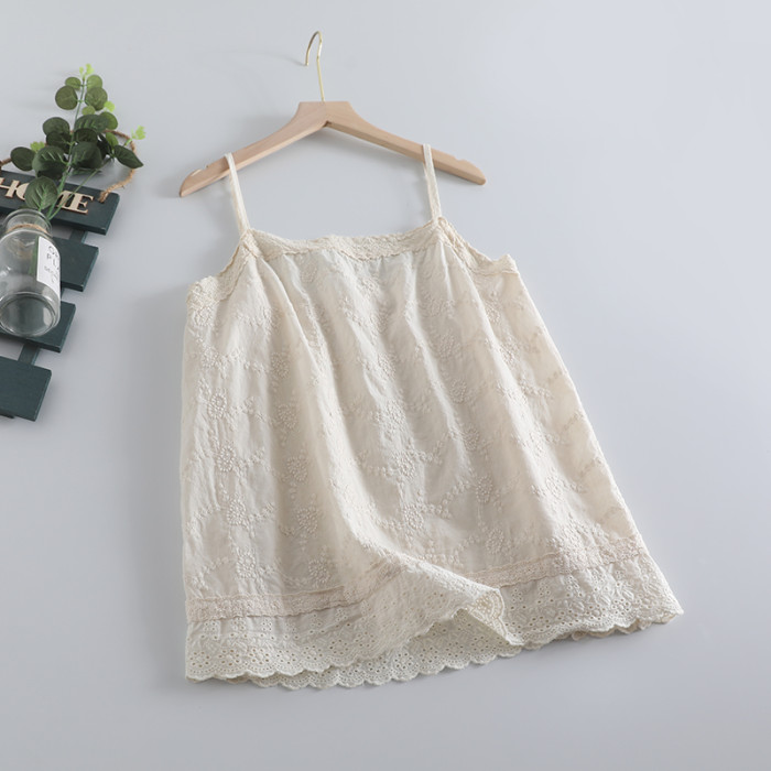新款簡約森女系可調節綉花吊帶衫女寬松百搭無袖背心減齡棉質上衣