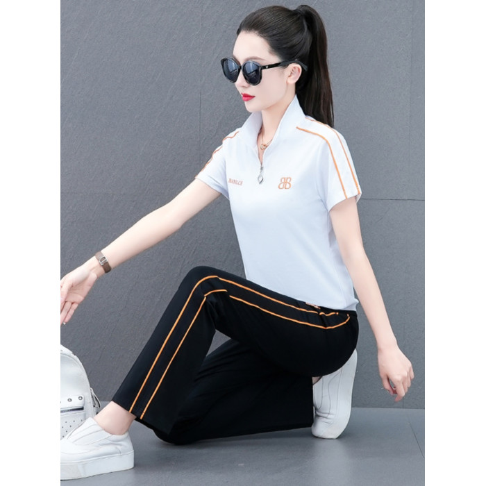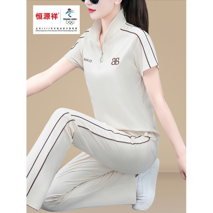 恒源祥彩羊品牌運動套裝女夏裝時尚洋氣跑步短袖冰絲氣質休閒服薄
