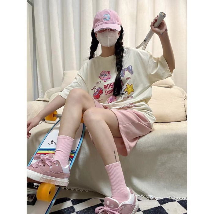 杏色短袖+粉色短褲(純棉兩件套)