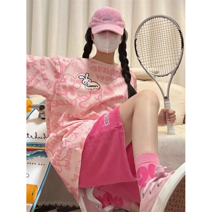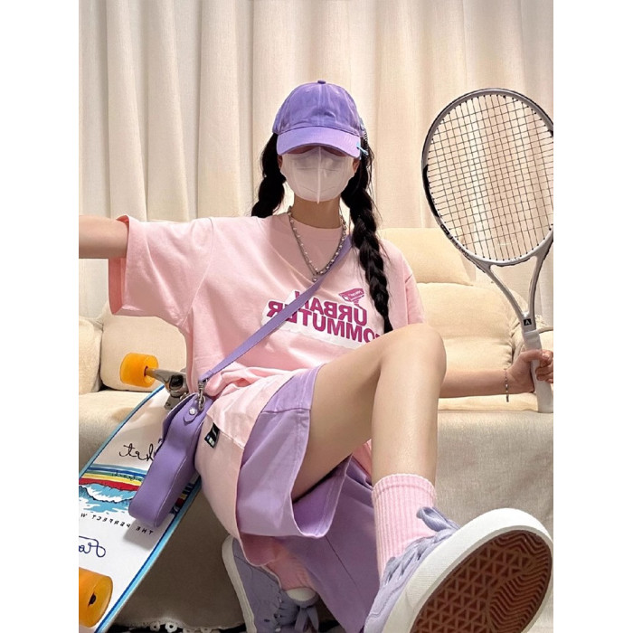 粉色短袖+紫色短褲(純棉兩件套)