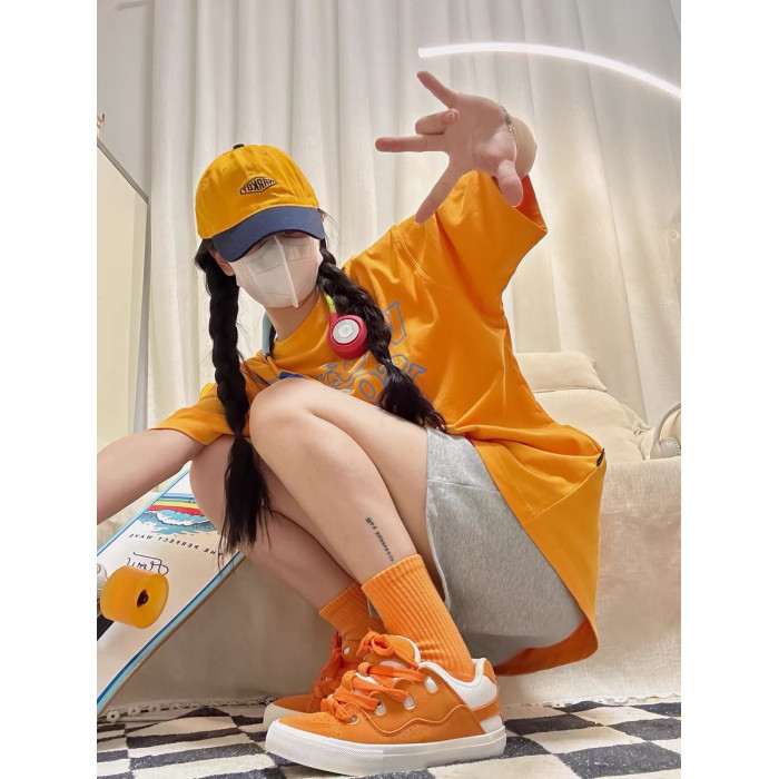 橘色短袖+灰色短褲(純棉兩件套)